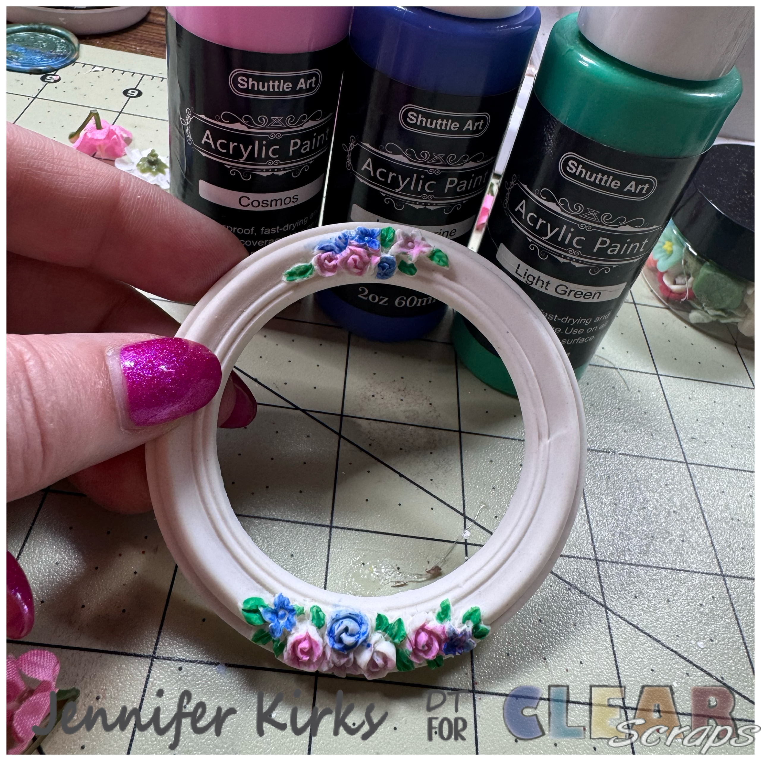 For the cover, I used a soft wash of watered-down paint to bring the flowers outside the circle frame to life. The result was a beautifully delicate look that I just adore. Once the flowers had dried, I carefully selected the perfect embellishments to complete the design, and then I assembled the cover, bringing it all together into something truly special.