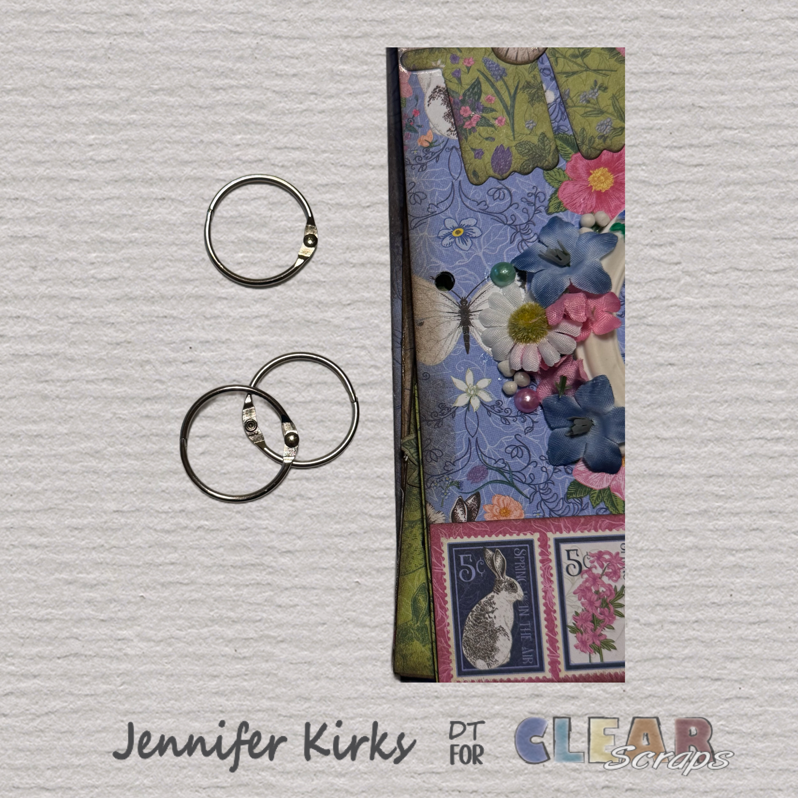 Finally, I grabbed three book rings and threaded them through the holes to bind the album together. To finish it off, I selected a mix of ribbons in various styles, colors, and textures, tying them around each book ring for that perfect, whimsical touch.