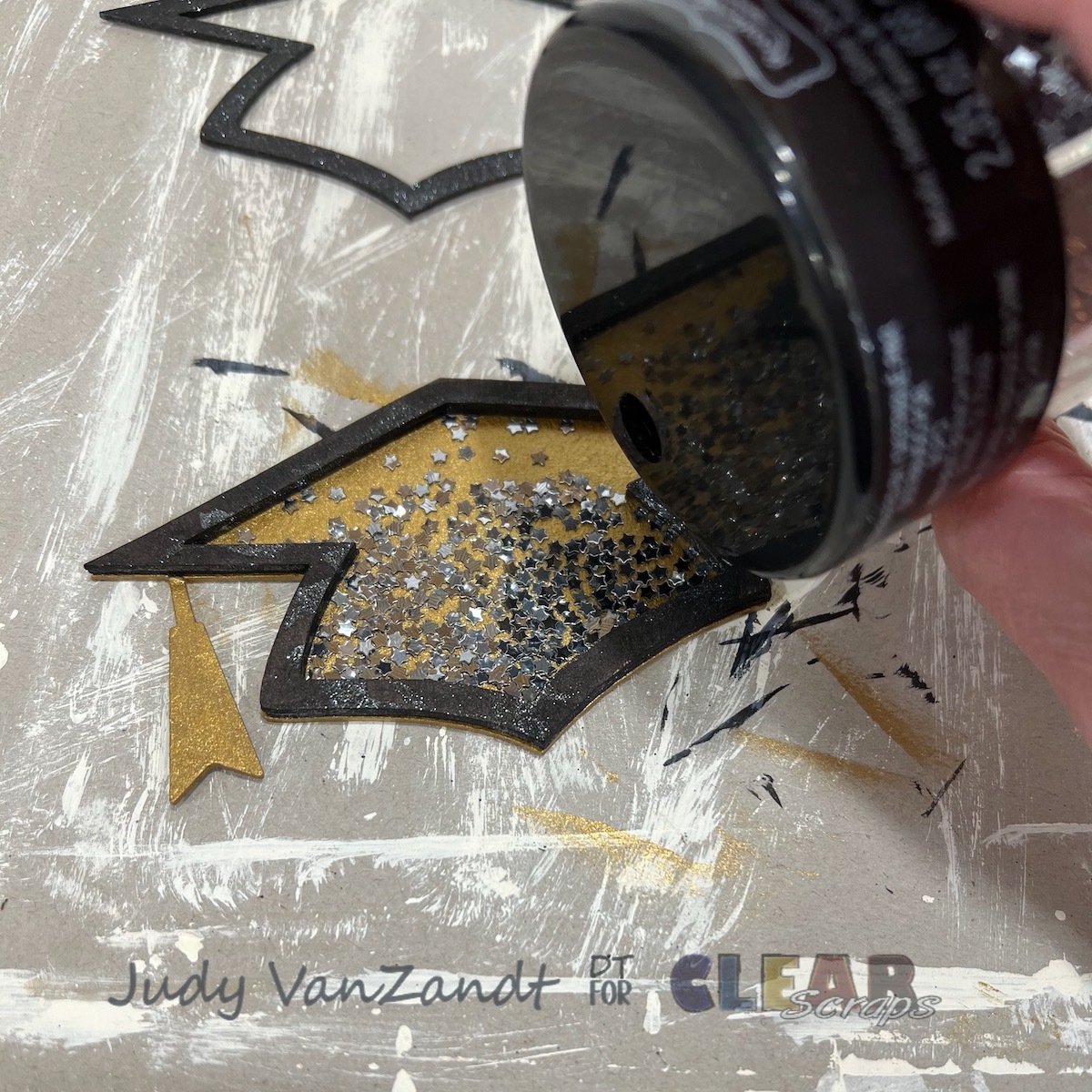 Add shaker elements to the back piece. I used silver chunky star glitter.