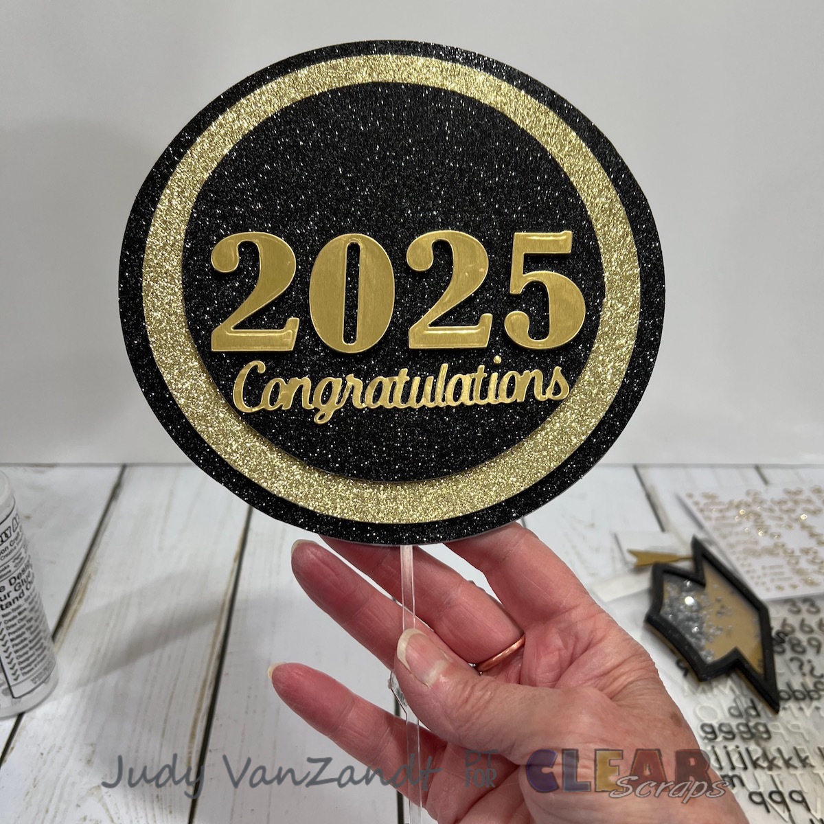 I die cut number for the year and Congratulations out of gold card stock.