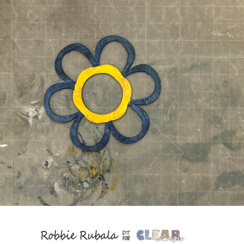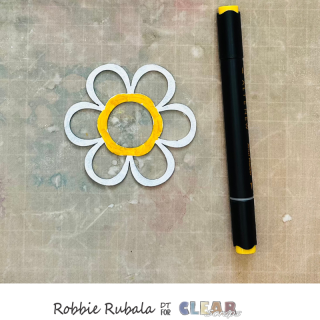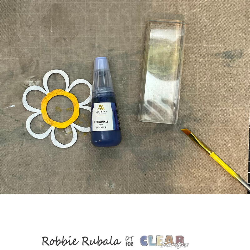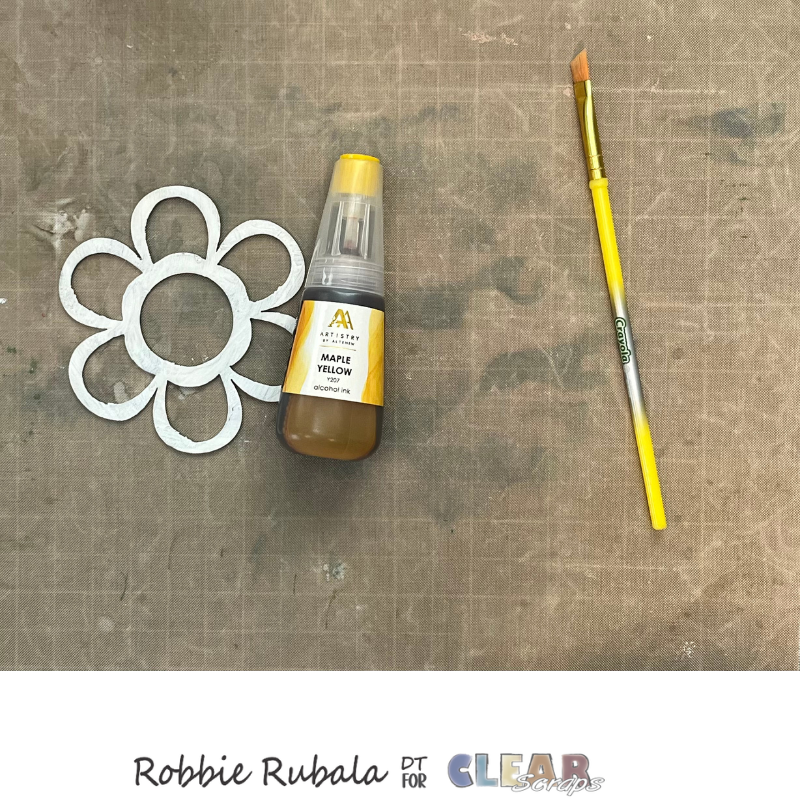 Choose a yellow alcohol ink refill and use a paint brush to paint the center of the flower.
