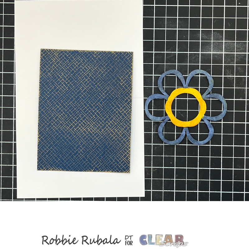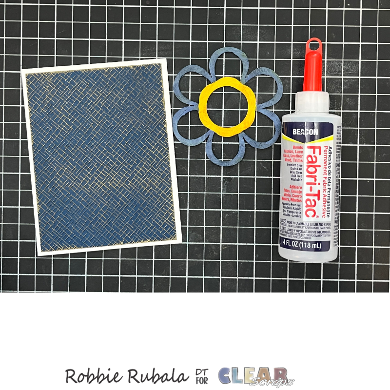 Use a strong glue and attach the flower to the lower portion of the embossed panel. Place a heavy block on top until the glue dries.
