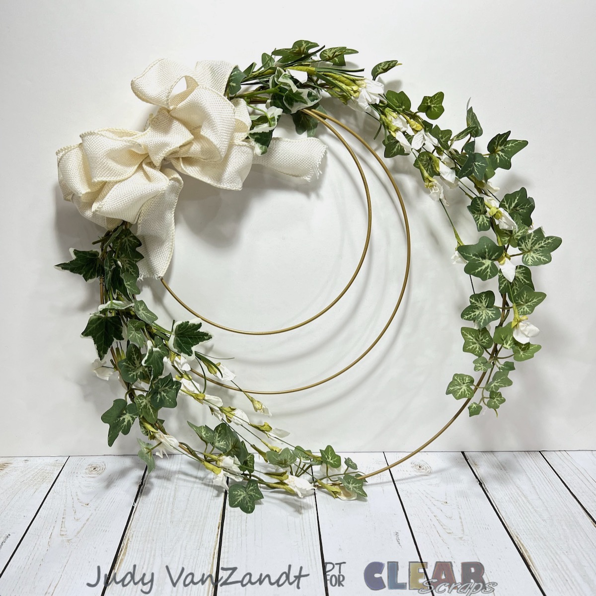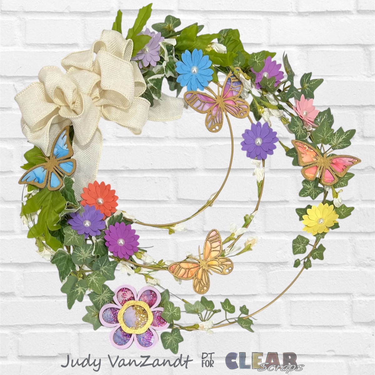 Hi there! It’s Judy here with an up-cycled wreath project created for Clear Scraps.