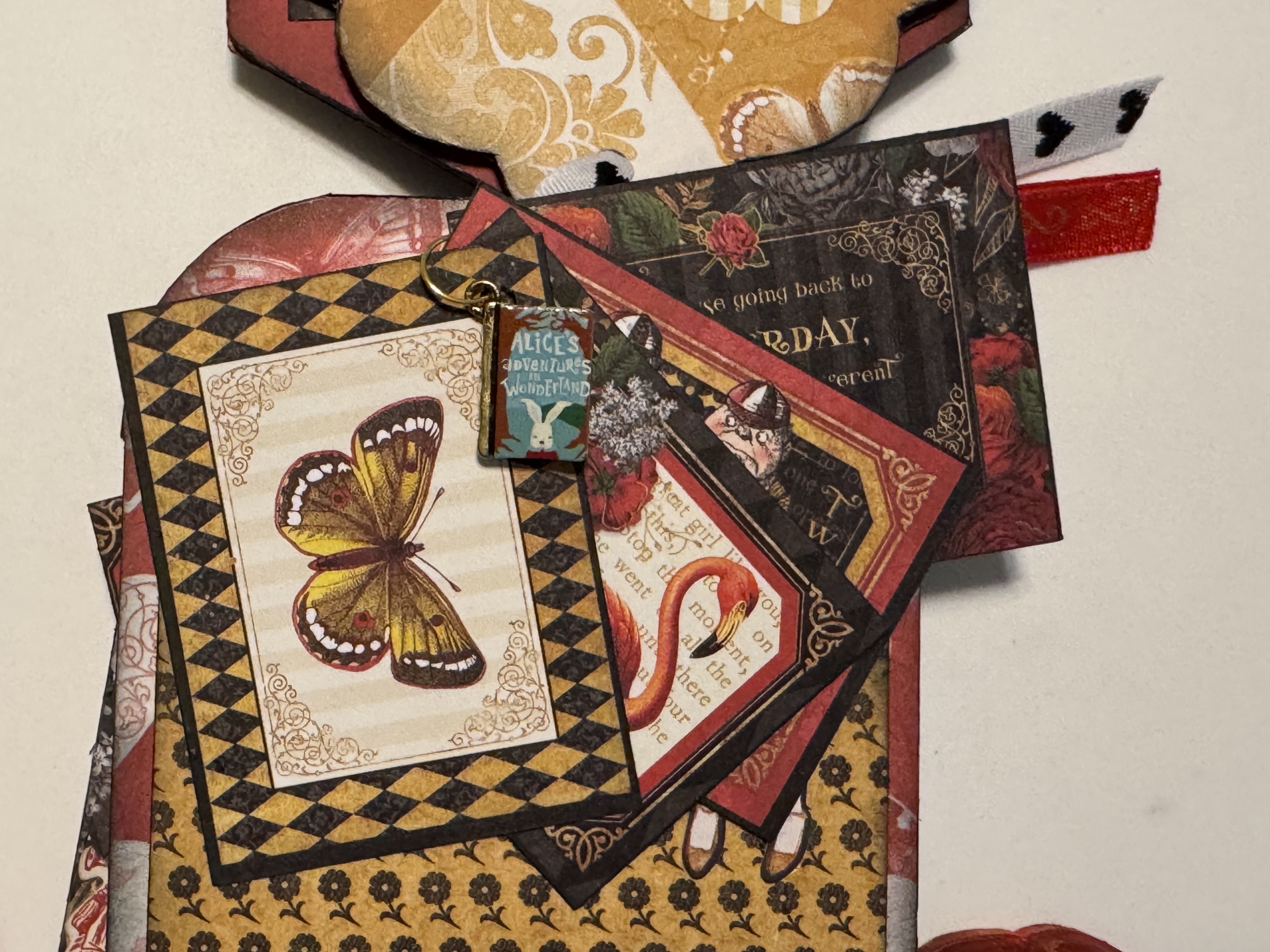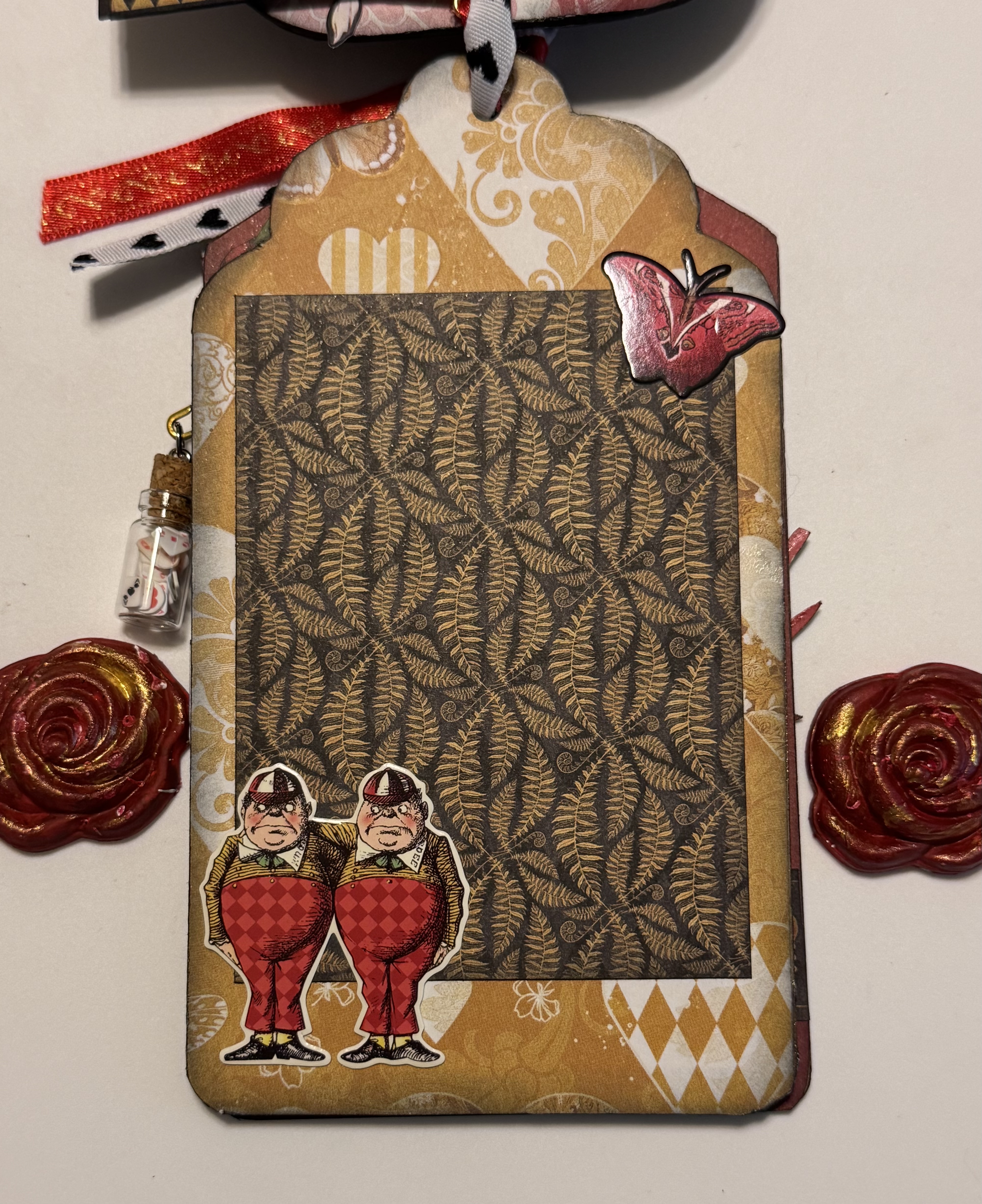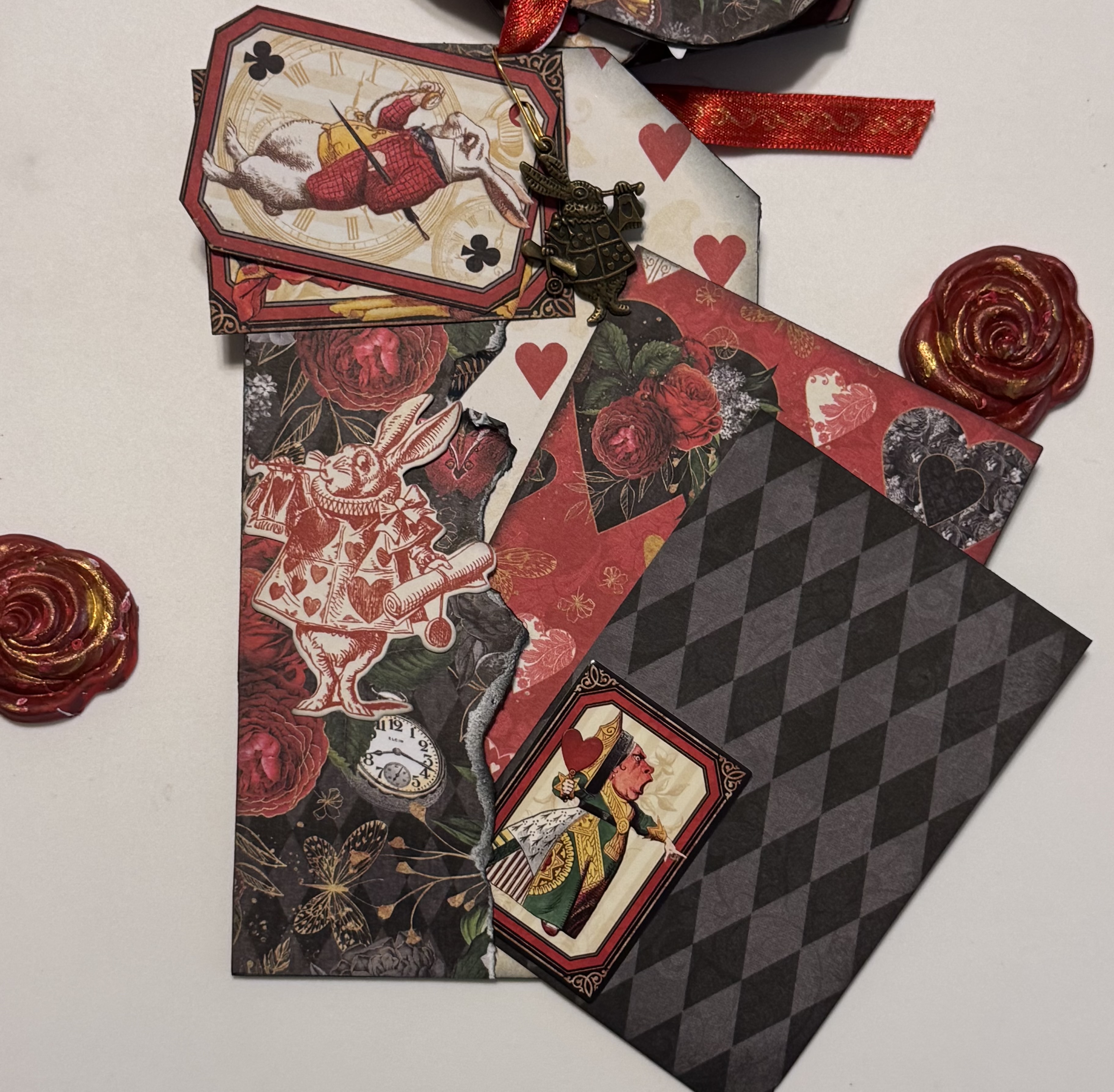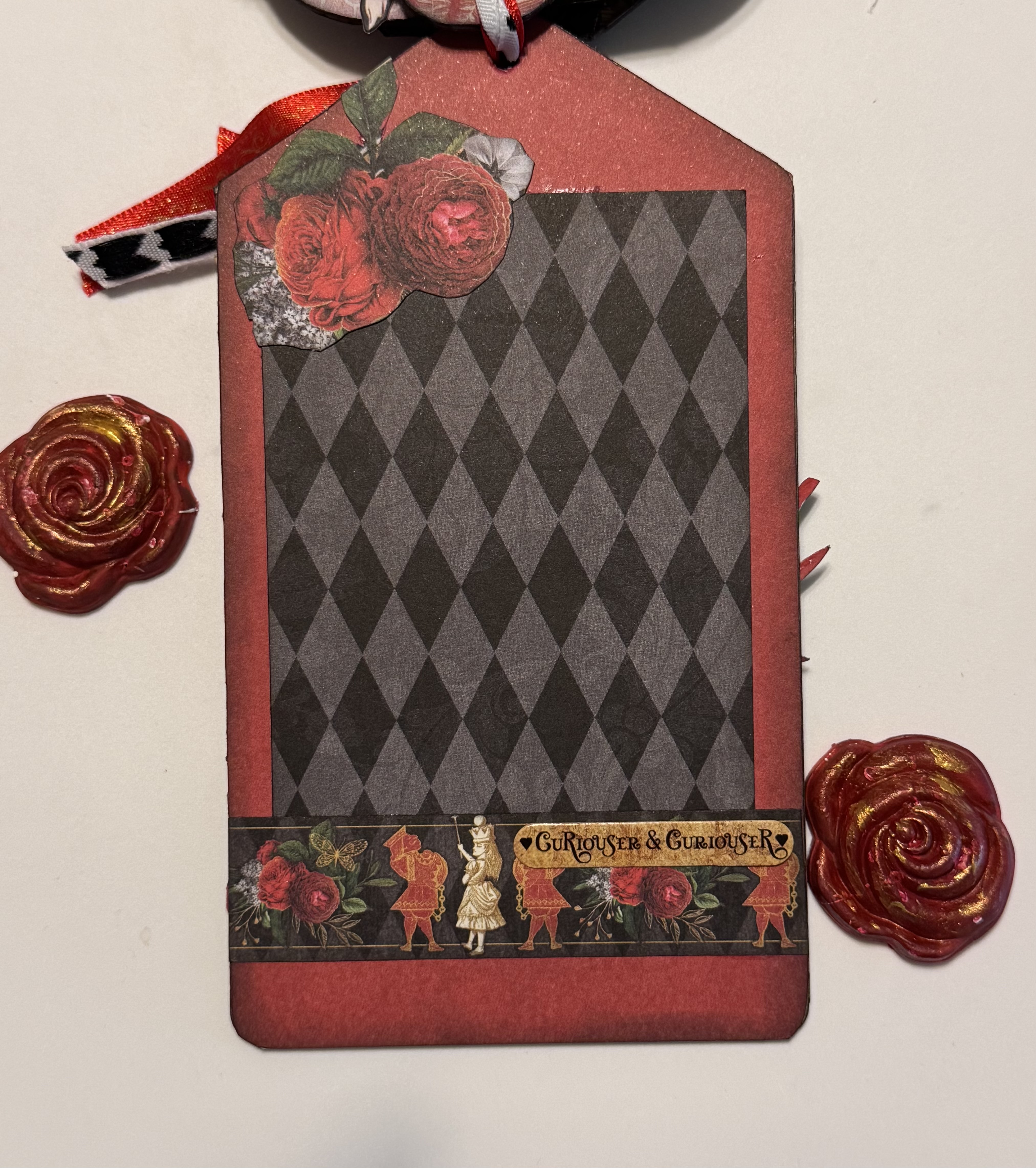 First, I carefully selected the perfect paper for each tag, ensuring it matched the whimsical vibe of Wonderland. After tracing, cutting, and gluing everything into place, I went ahead and tidied up the edges with an X-Acto knife for that sharp, polished look. To finish it off, I reached for some bold black ink and gently inked the edges of each tag, adding a touch of depth and drama to every piece.