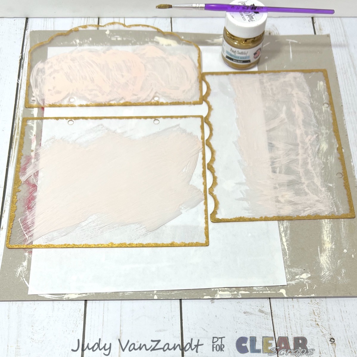For the acrylic pages, I opted to paint the backside of each with a light pink acrylic paint. Remove the protective film on both sides of each page before starting.