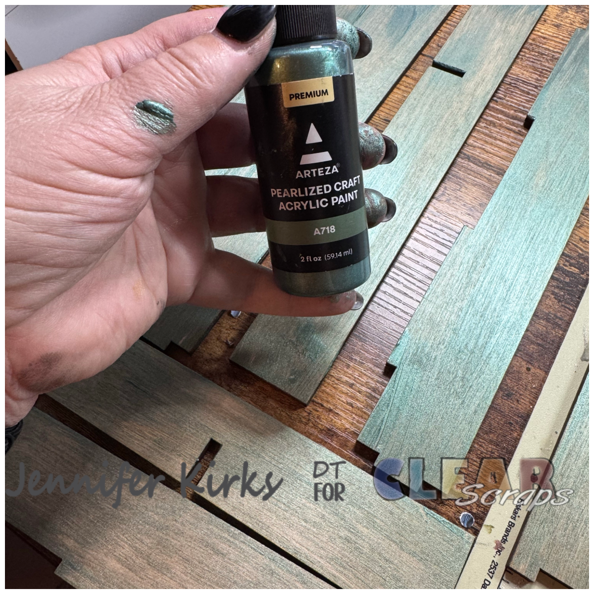 To complement the paper, I selected a gorgeous blue-green metallic paint and used it to coat all of the wooden pieces—front and back. The shimmer in the paint adds just the right touch of elegance while still keeping with the natural, earthy feel I love.