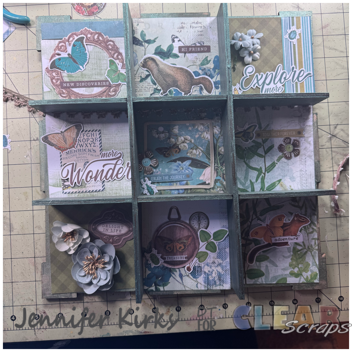 First, I started by choosing the perfect paper that really captured the essence of nature. The collection I used is full of earthy tones and charming details—think animals, insects, leaves, and other natural elements. I was especially drawn to the rich browns, soothing greens, and soft blues that run throughout the designs.