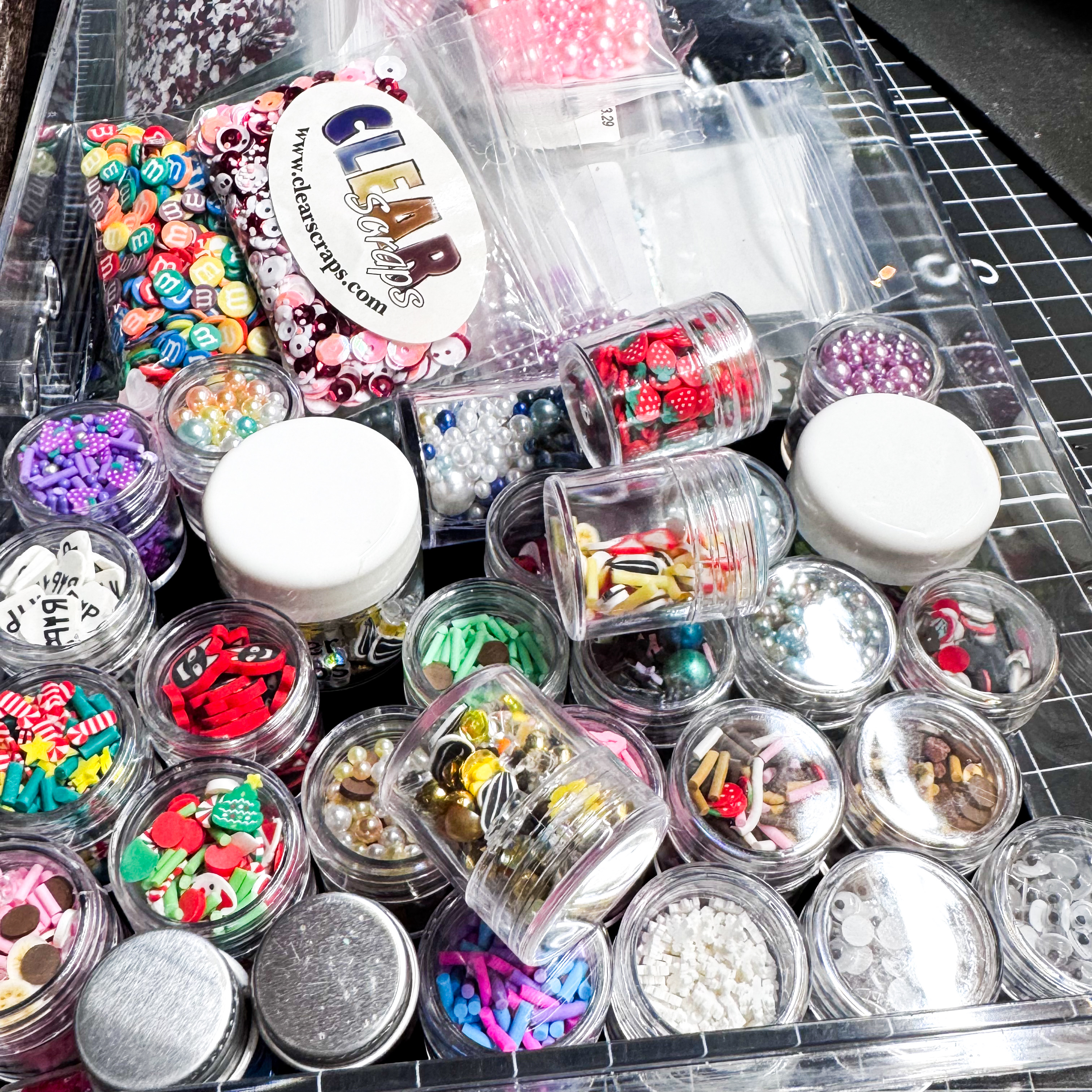 Not only can I make them look any way I want to and add ANY filler to the inside… but HOLY MOLY, they are sooo cute and fun! Obviously, the first thing I do after deciding which shaker I want to use, is to decide what I want to fill it with. I have so many shaker fillers it is almost impossible for me to decide. Here is just a small sampling of my stash:
