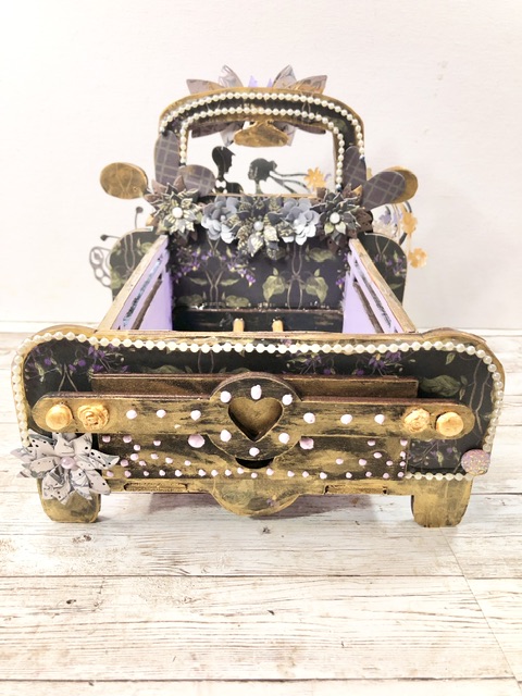 I wanted a large floral arrangement for the front and opted to use that extra piece on the back for some extra embellishment.