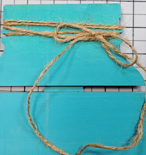 I adhered the Jute Twine to the neck of the Mason Jar Medium DIY Pallet Shape