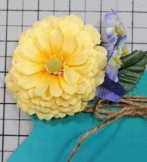 Next, I adhered the leaf and the flowers to the Mason Jar Medium DIY Pallet Shape with the Glue Tool.