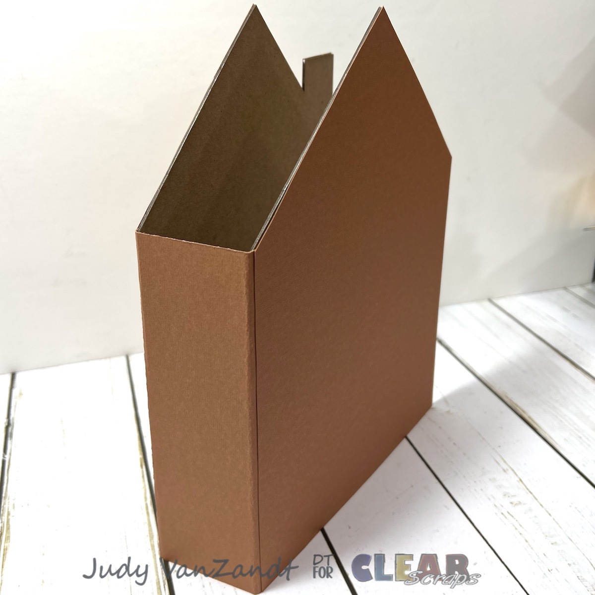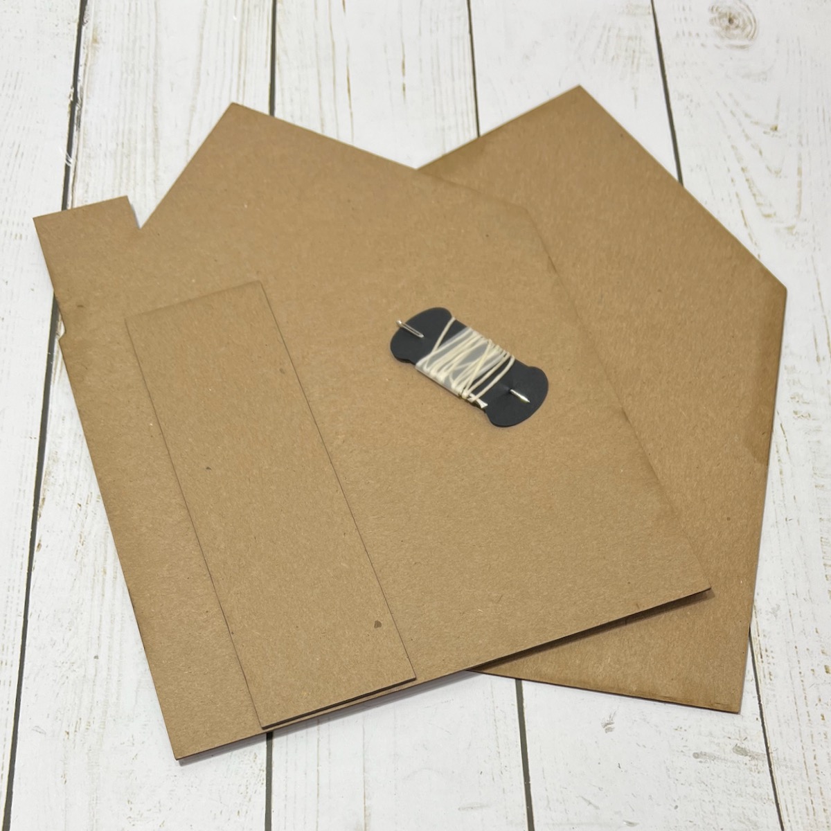 I am using the Large House Journal Cover. This cover measures approximately 7.0 x 10.5 x 2.0 inches. It is the perfect cover for all your junk or folio cover albums. Made from thick laser cut chipboard that will last over time. Be sure to see the website for a PDF template to create binding page holes. Comes with a binding needle and wax thread.