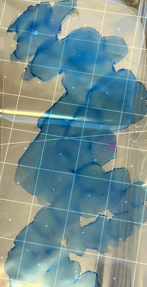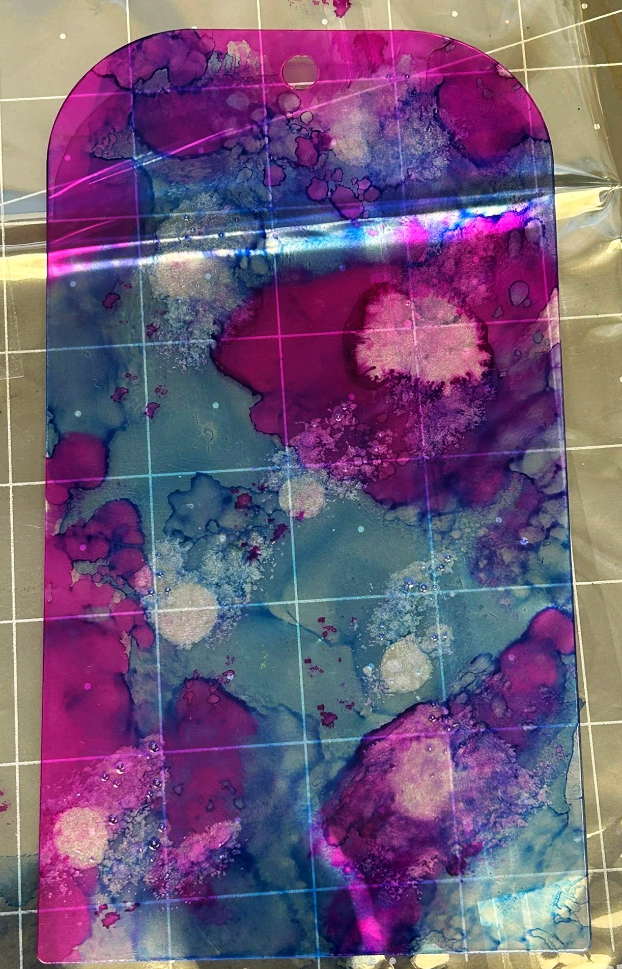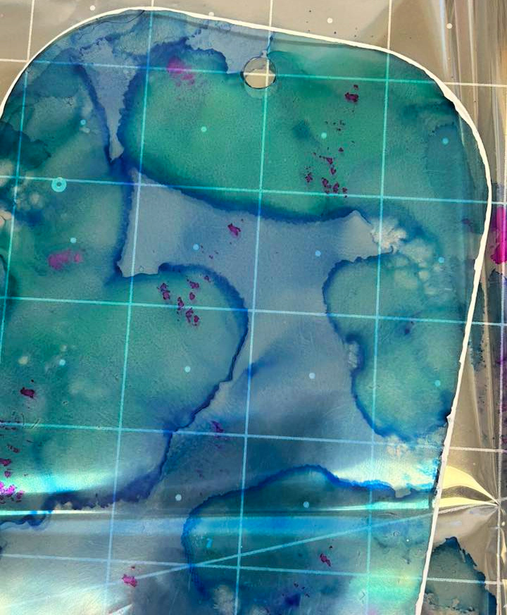 This started by "pouncing" on the acrylic tag using a felt pad soaked with alcohol ink in blue.