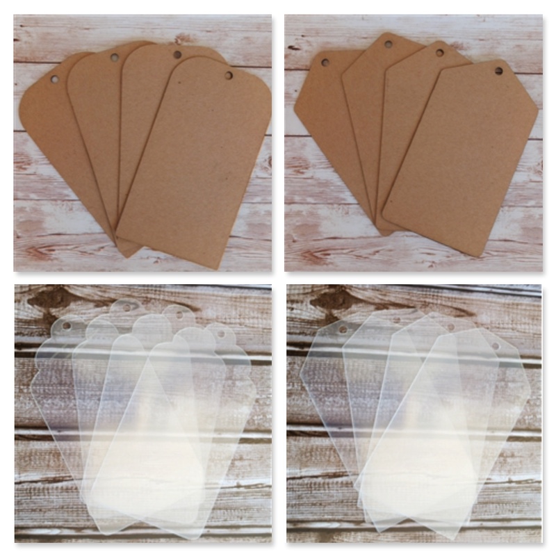 Chipboard Rounded #10 Tags, Chipboard Pentagon #10 Tags, Acrylic Scallop #10 Tags, Acrylic Angle #10 Tags