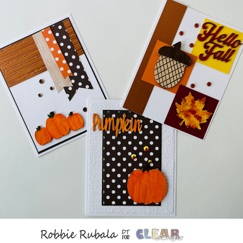 Fall is right around the corner and time to make your cards to send out. For my cards I used the Embellishments chipboard punchout for Fall. The chipboard pieces are perfect for your card making.