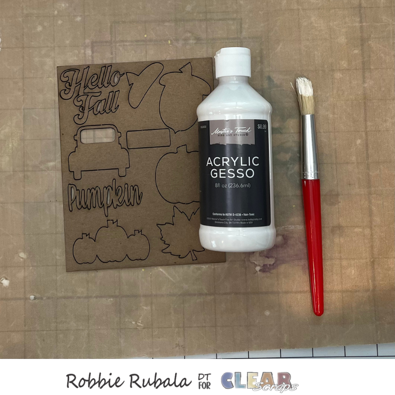 To begin, apply a coat of white Gesso to the pieces you will use. This will allow the paint to adhere and not soak into the wood.