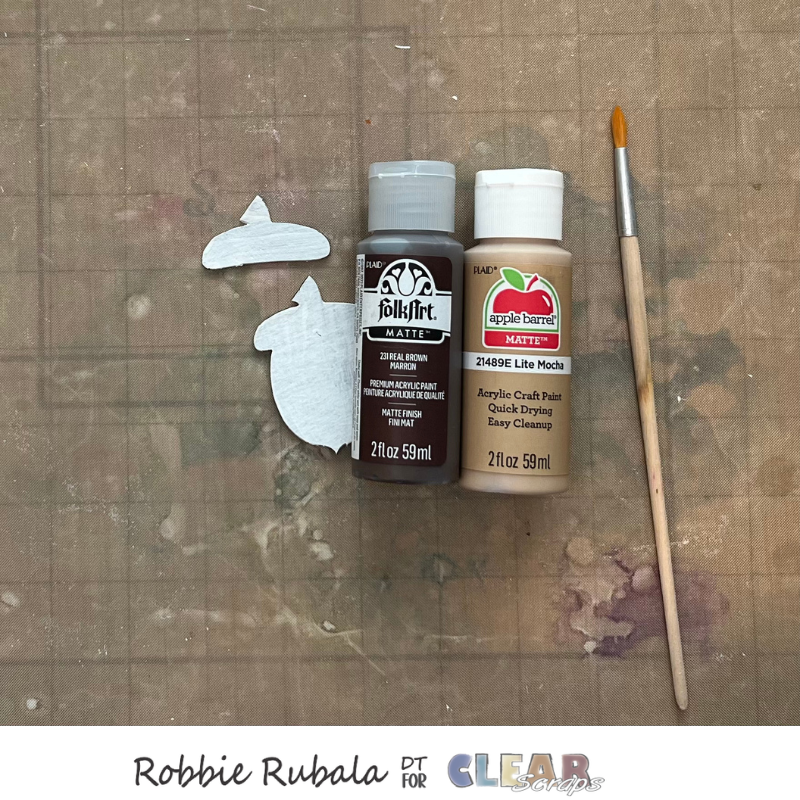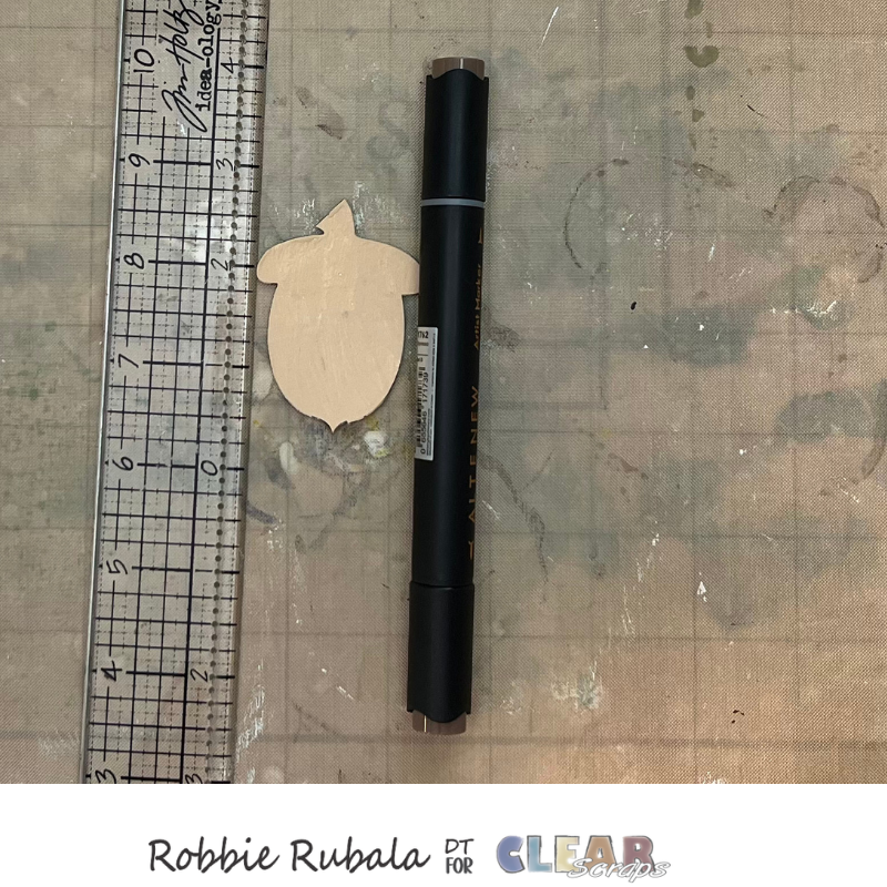 For the acorn I used a brown alcohol marker and a ruler to add some crosshatch lines. When finished I glued on the top of the acorn.