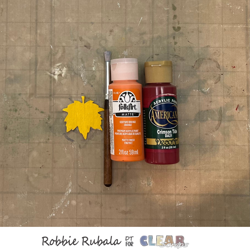 To give the elements interest and texture I used some of them to add more color. For the leaf I used red and orange to brush on some of the color.