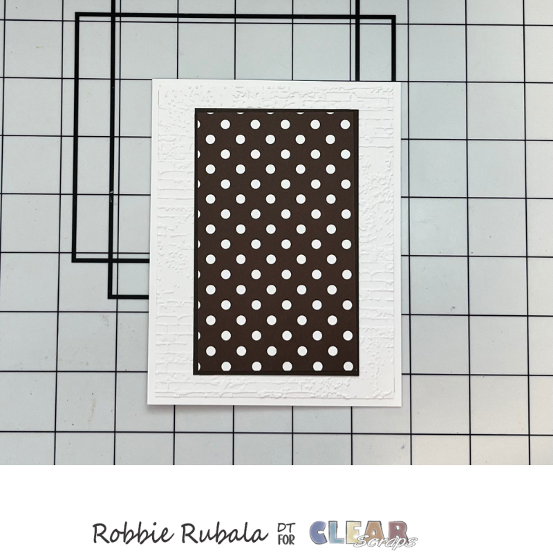 Use the embossing folder to emboss the white panel. Add the polka dot paper to the brown panel then add it to the embossed panel centering on all sides.