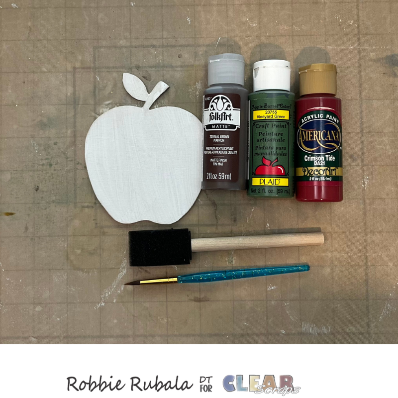 To make the apple use the brown, green, and red paint and paint the shape. Let dry completely.