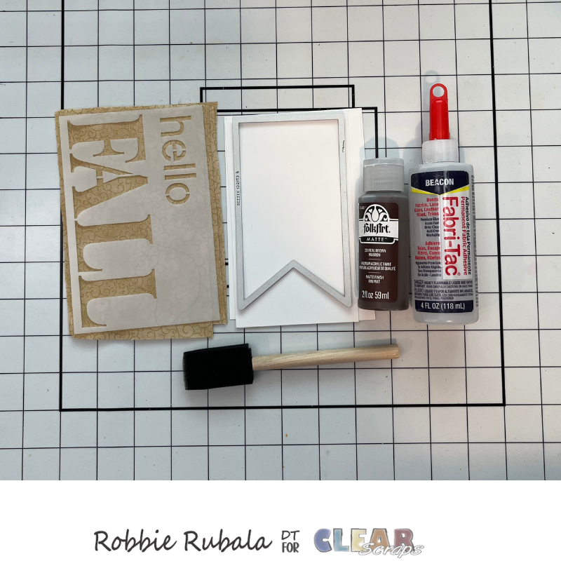 For the banners you will need some cardstock, Fall fabric, brown paint, Fall stencil, die cutting machine, sponge, banner die, and a strong glue.