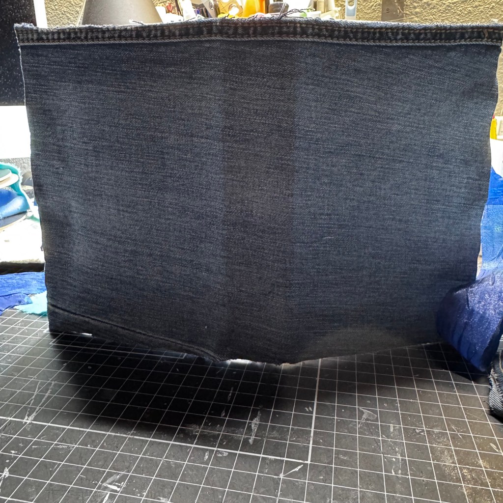 I chose to use the upper part of the pant leg, so that the outer seam could line up with the top of my journal. Look at the photo and you’ll see what I mean. I wanted to leave that thick seam exposed.