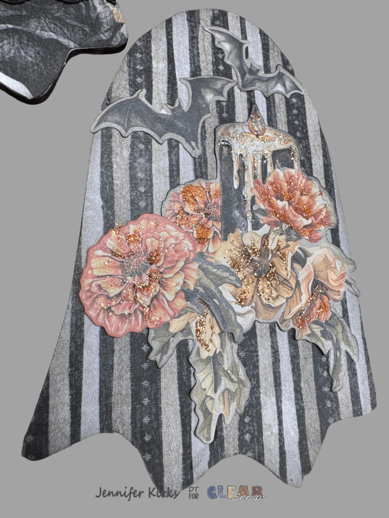 To finish it off with a bit of Halloween sparkle, I added Stickles to the flowers, spiders, and leaves—just a touch to give each ghost a magical glow.