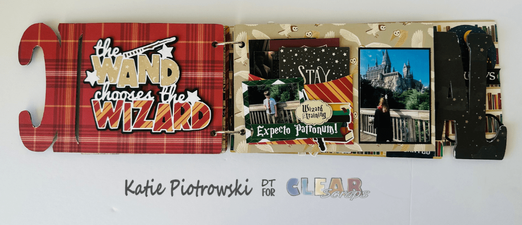 My daughter had the privilege of visiting Universal Studios last fall with her nephew and his aunt from his mom’s side. They road-tripped from Oklahoma to Florida and spent a week taking in all the sights. Their main focus at the park was the Wizarding World of Harry Potter, so the Magical word album was the perfect piece to create a one-of-a-kind keepsake for her to cherish.