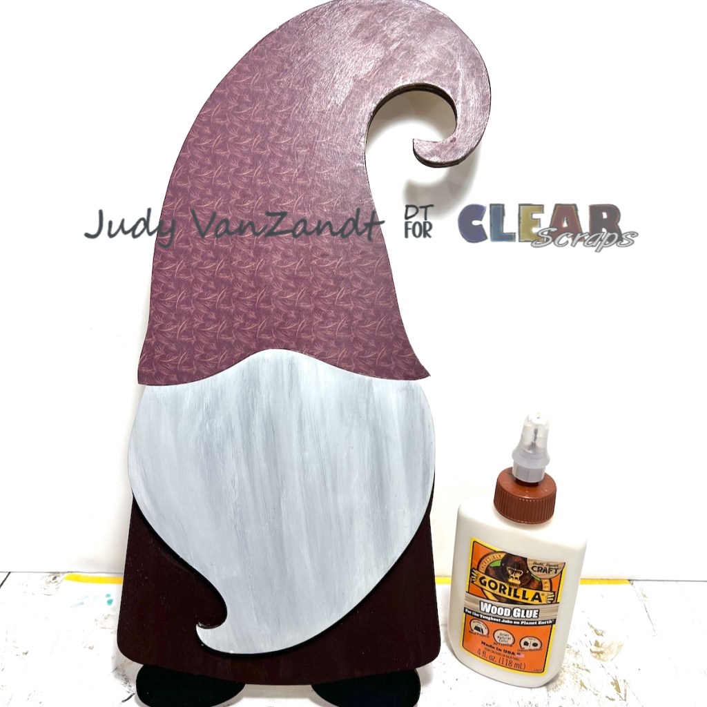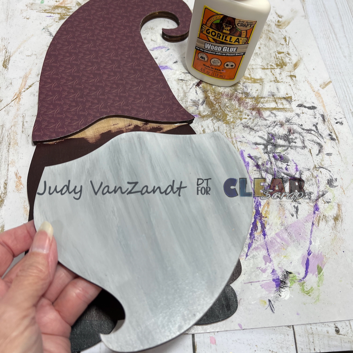 Adhere the shaker to the gnome. Position and glue the hands in place. Attach the nose.