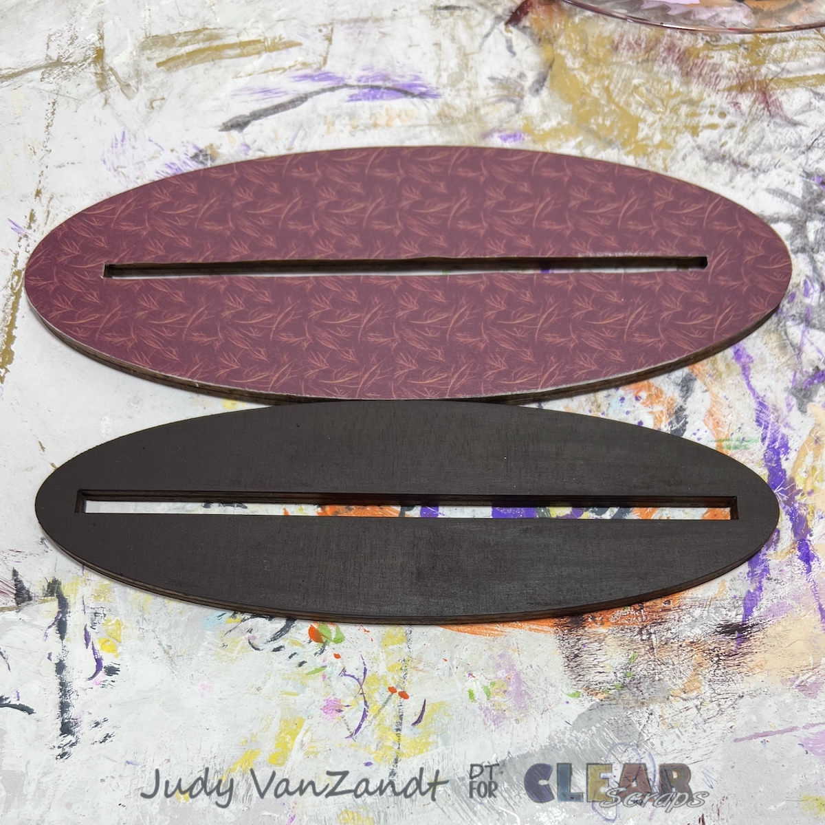 Trace the larger base piece onto the backside of a patterned paper and cut out.