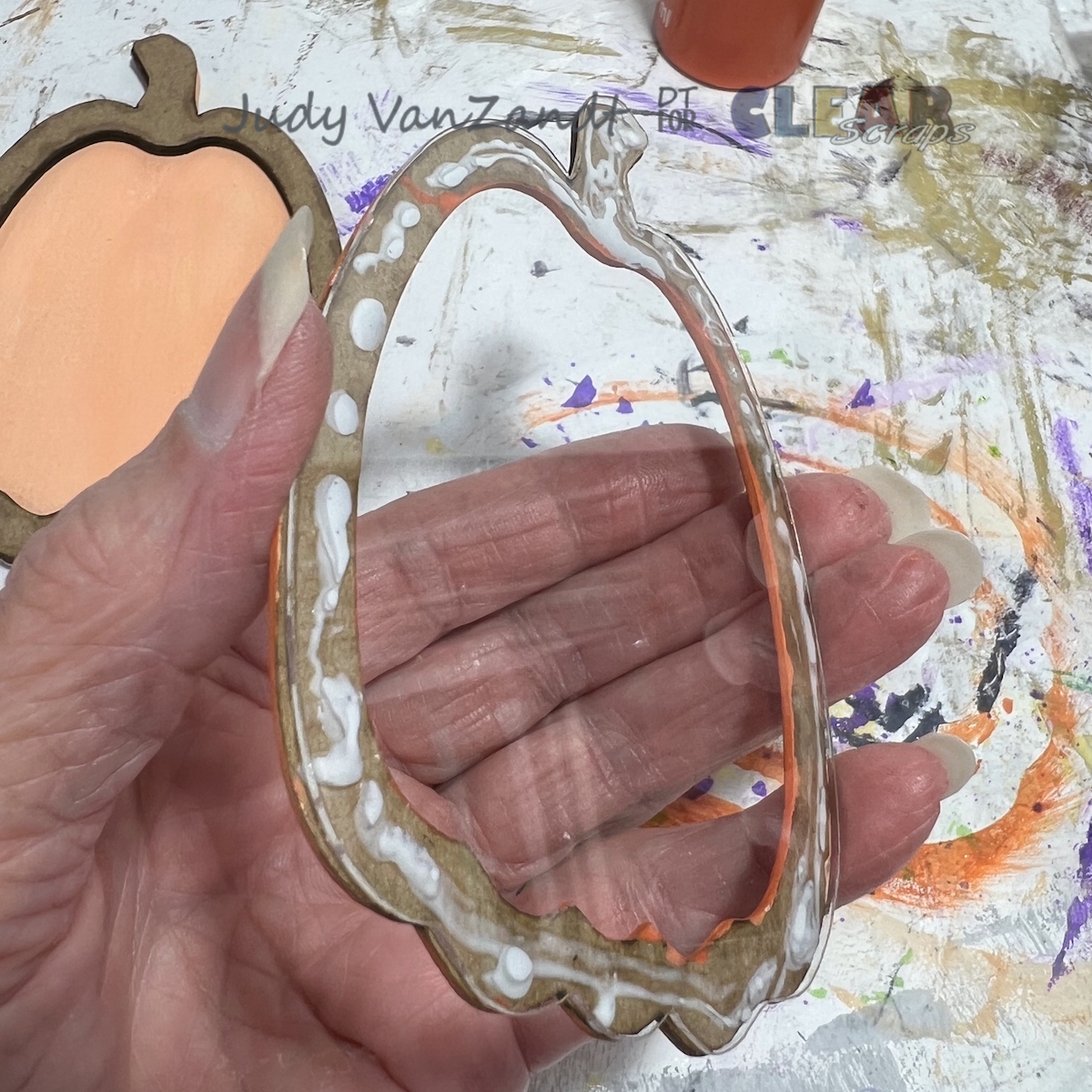 Adhere 2 of the forms together and attach to the back. Apply color to the 3rd form piece. I used sparkle pens. This will be the top piece.