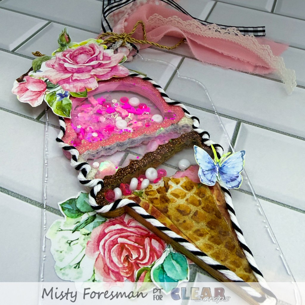 I admit, I am one of those crafters. Now that we are officially in November and engulfed with the Holiday Season, I have packed my summery craft supplies away and shifted gears. However, as I was shifting my scrap area around, I found this Mini Icecream Cone Shaker tucked into my box that holds all my Clear Scraps project starters.