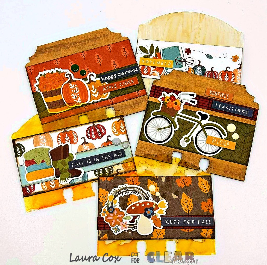 This is a fun fall set of memory-dex cards that can be used in one of the Clear Scraps Memory-Dex boxes to create a beautiful home decor piece! You can use these as dividers and insert photos or cards with “thankful” sentiments from friends and family during the holidays!