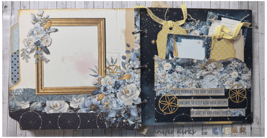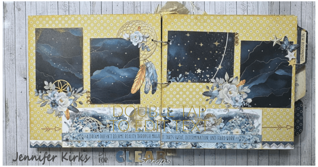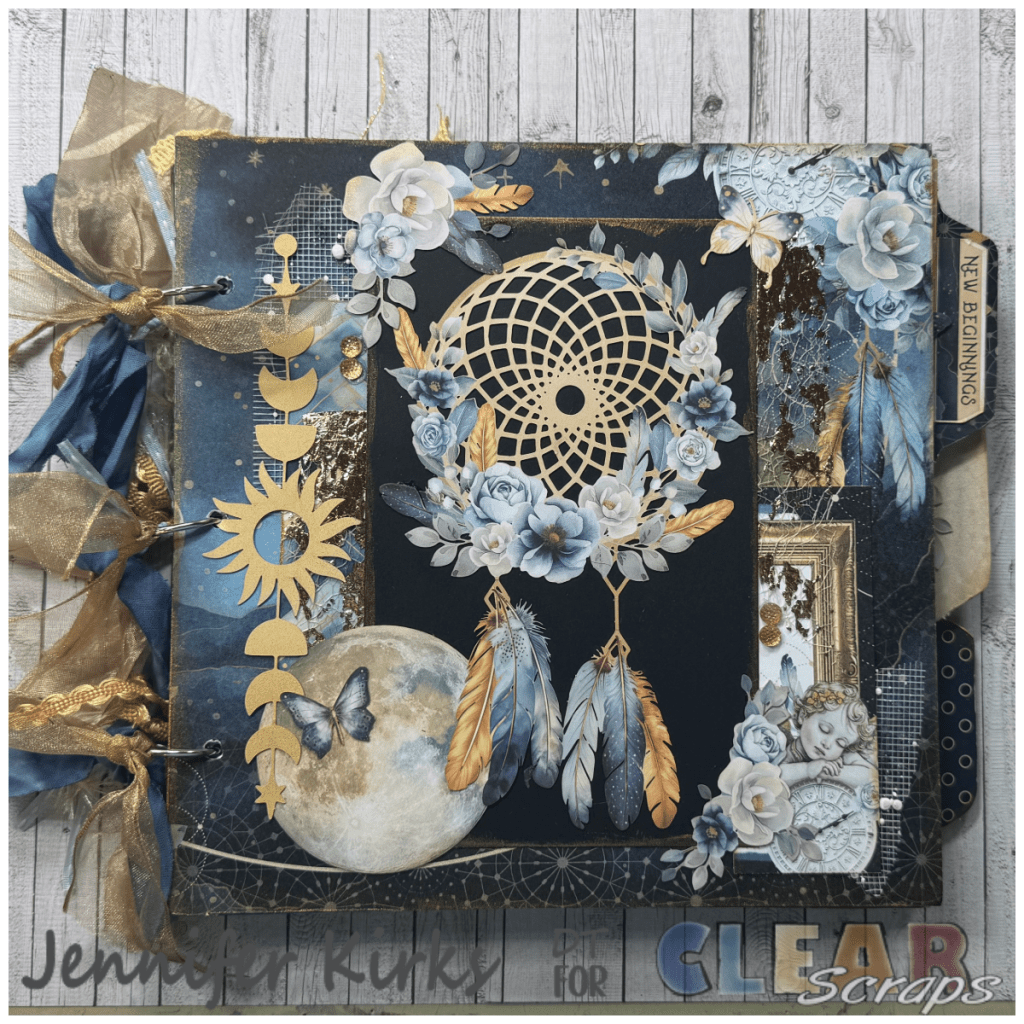Hey crafty friends! Jennifer here on the blog today, sharing this gold-kissed, blue-and-black celestial dream catcher album. I absolutely love how these colors dance together, and I couldn’t wait to dive in and bring this dreamy little project to life.