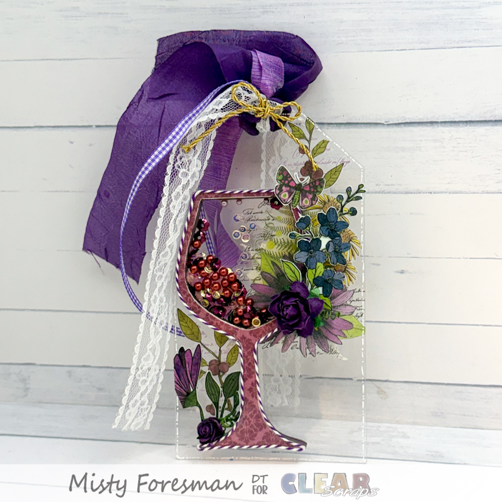 As we say Good Bye to the Old Year and Hello to the New One… I say CHEERS! To you, your family, your friends, and to the beauty of 2025…because why focus on the bad? And…What better way to say CHEERS! than with the Wine Glass Shaker that I have filled with lots of “bubbles”! Not only did I fill the shaker with lots of “bubbles, I mounted it onto an acrylic for double sided visibility! It is no secret that I love making shakers. Tey are so fun! However…This is the 3rd or 4th one that I have mounted onto an acrylif tag and I LOVE LOVE LOVE the way that they look!!
