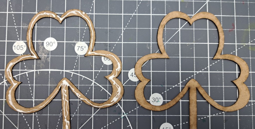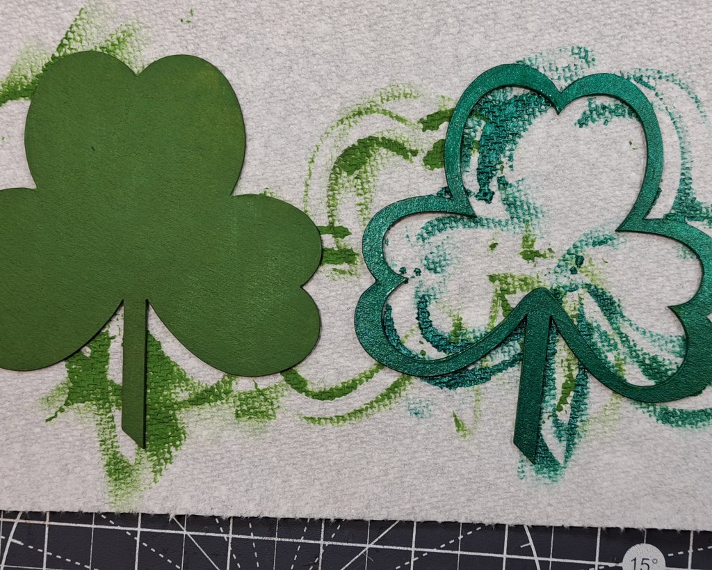 I start by painting the back and front of the Clear Scraps Mini Shaker Shamrock . Then, set them aside to dry.