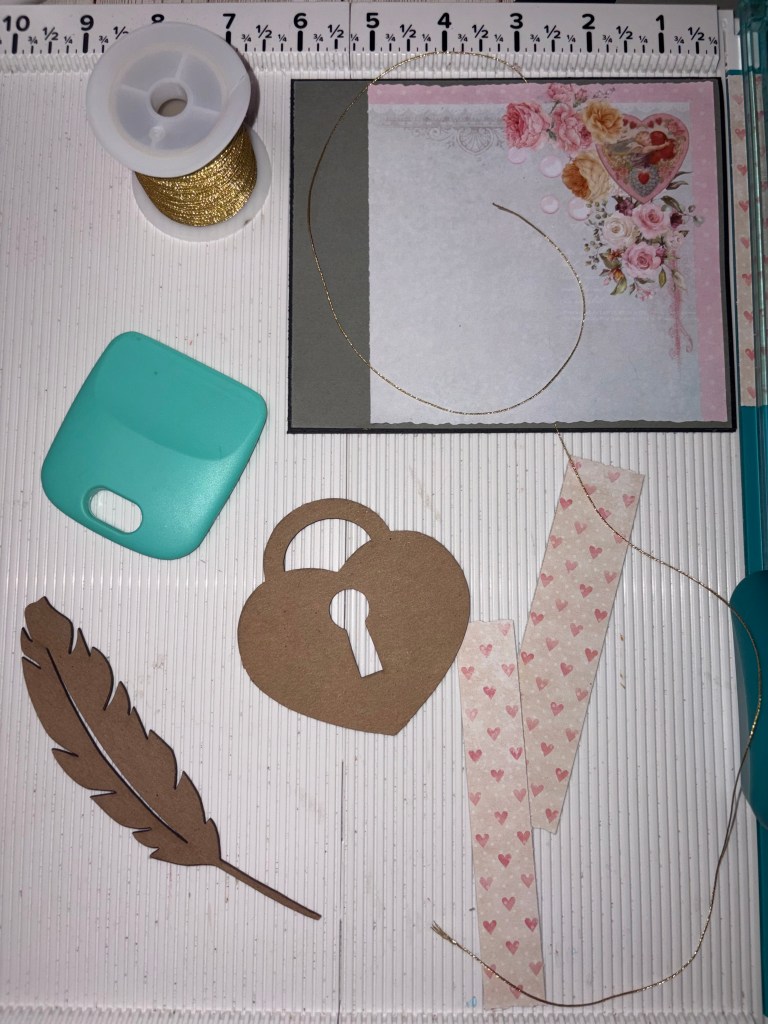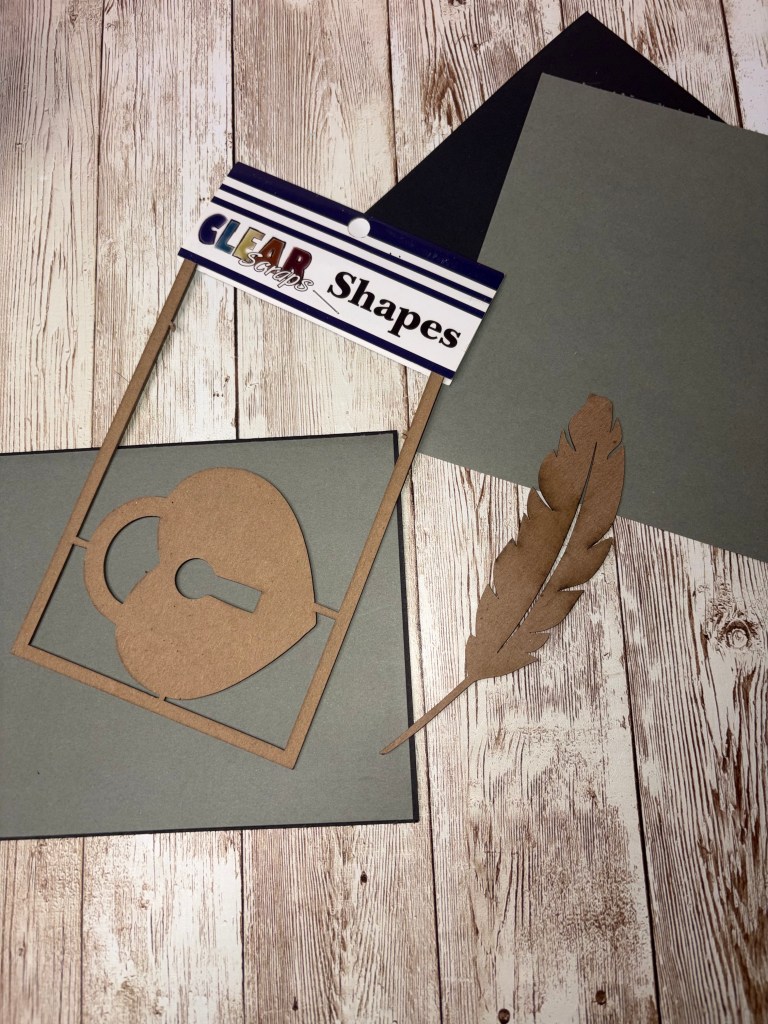 Today I have two cards I’ve made using Chipboard Embellishments. The Heart_Lock and Feather are perfect for romantic cards. They match the elements in the paper collection I working with.