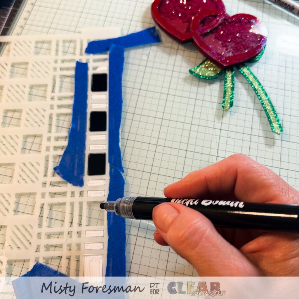 This one uses the Mini Double Shaker Hearts with the #10 Acrylic Angle Tags. I used the 5×9 Plaids stencil to embellish the tag a bit.