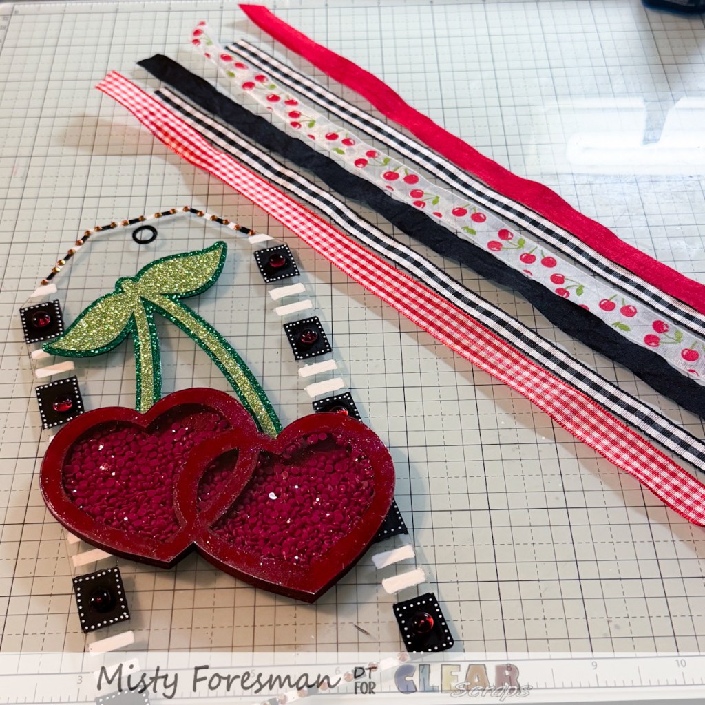 I already loved the look of the tag, so I knew that it was only going to get better! I selected a few of the prettiest ribbons from my stash. Once I added the “cherries” and the ribbon, it was perfection! And will still work as a Valentine Tag!!