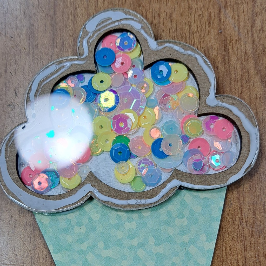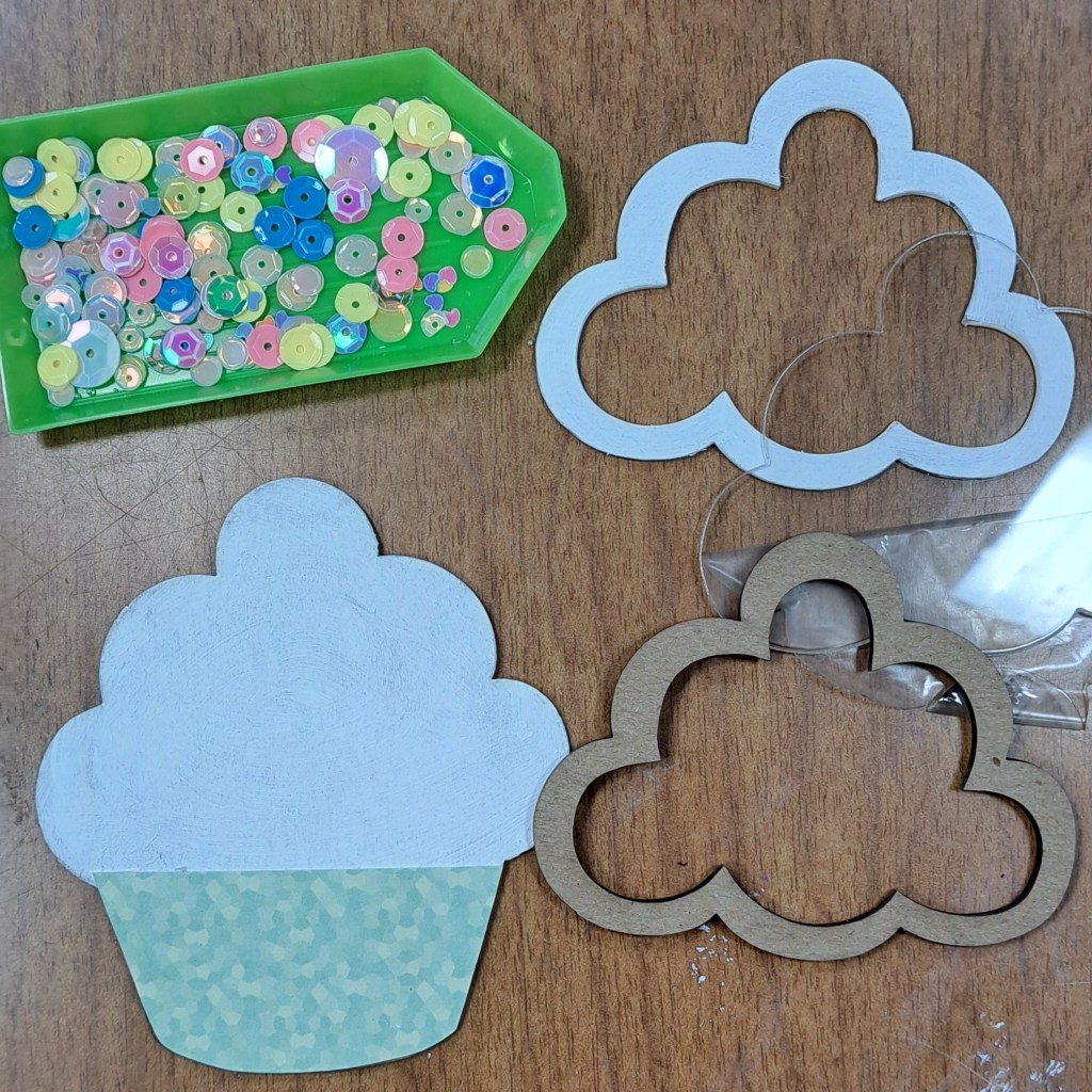 Once, my Mini Cupcake Chipboard Shaker pieces are dry I can assemble it.