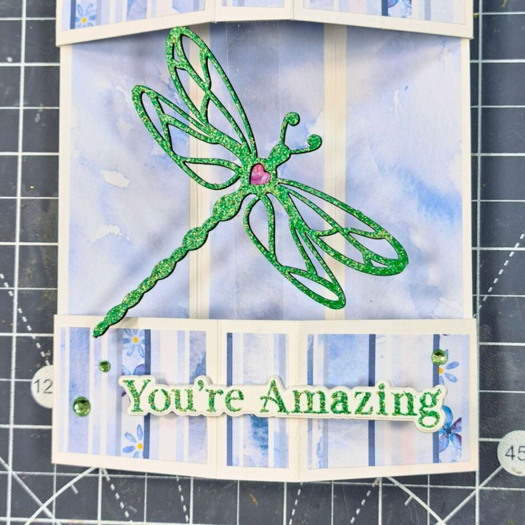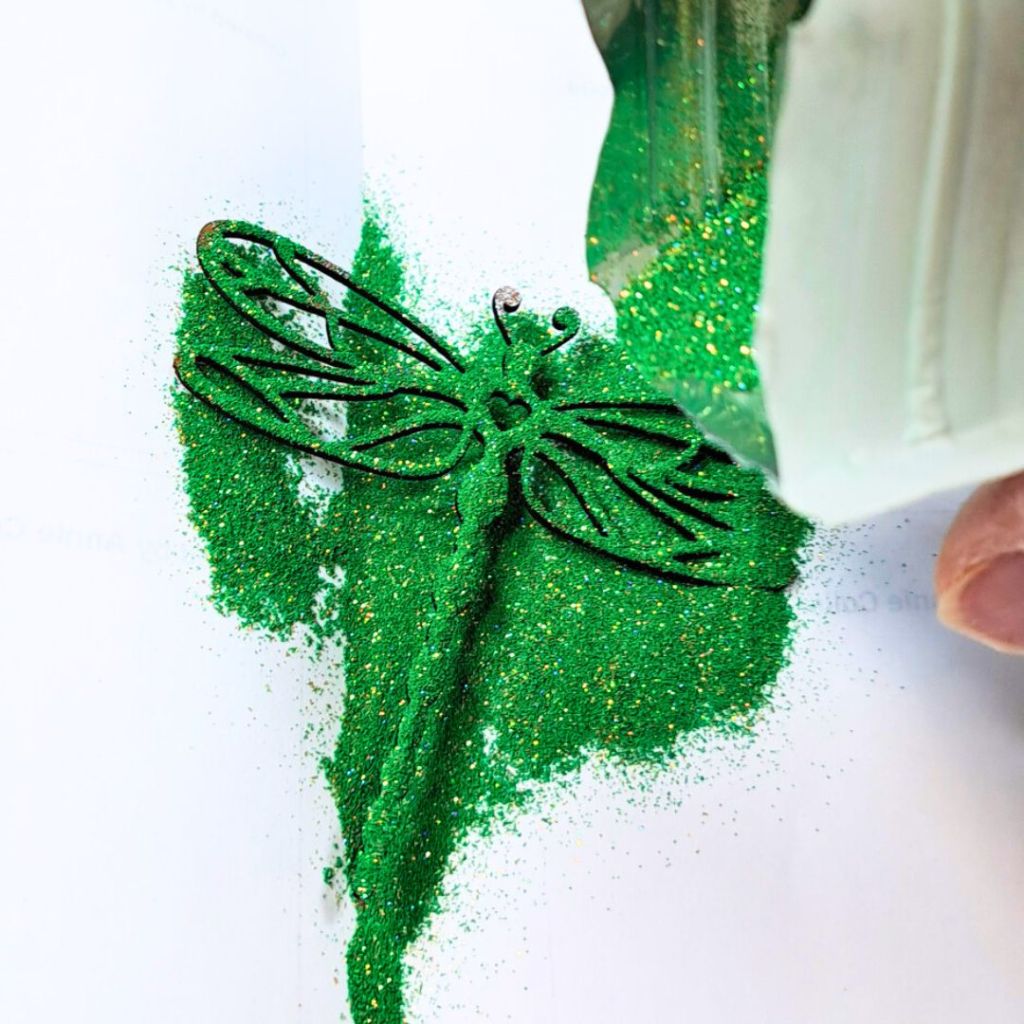 I then covered the dragonfly with embossing powder. Shook off the excess powder.