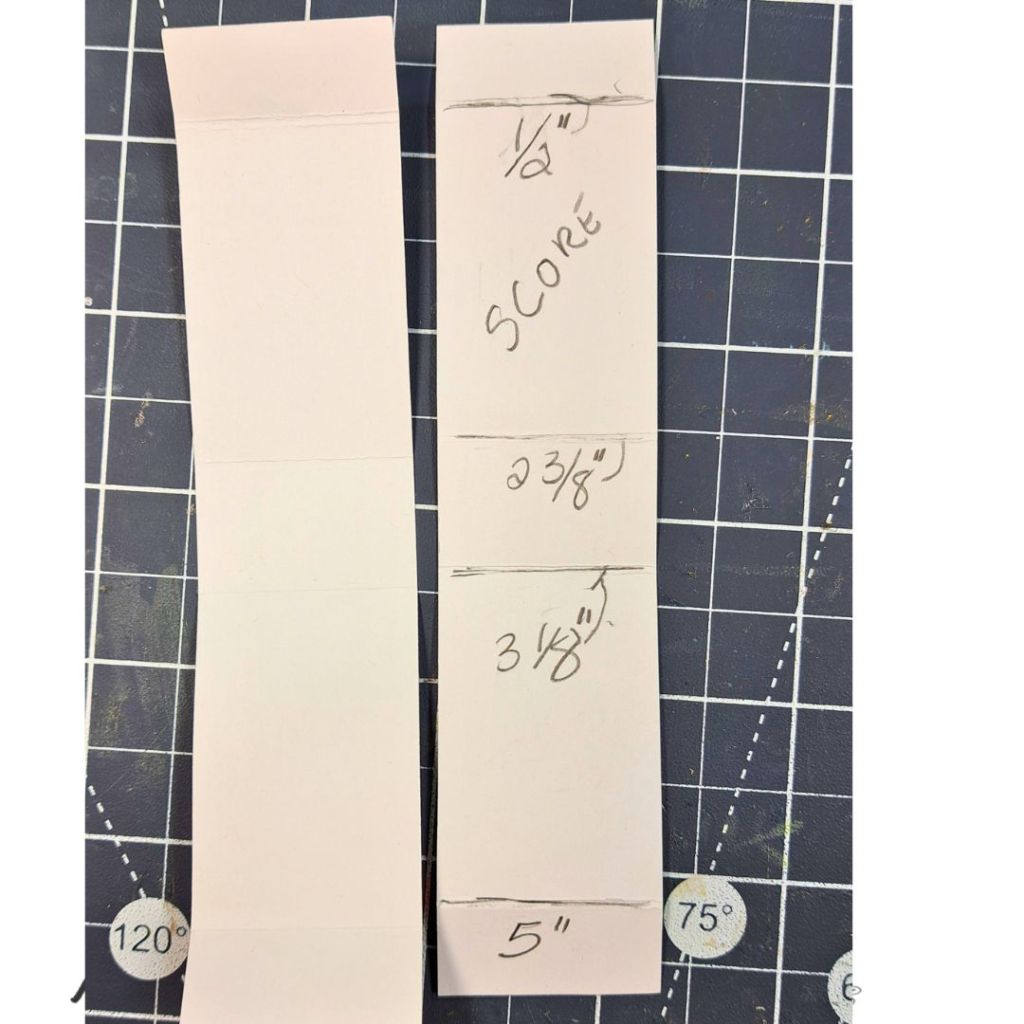 Next, I trimmed my pattern paper for the base I cut 3 pieces. Each piece is 1-1/4″ x 51/2″