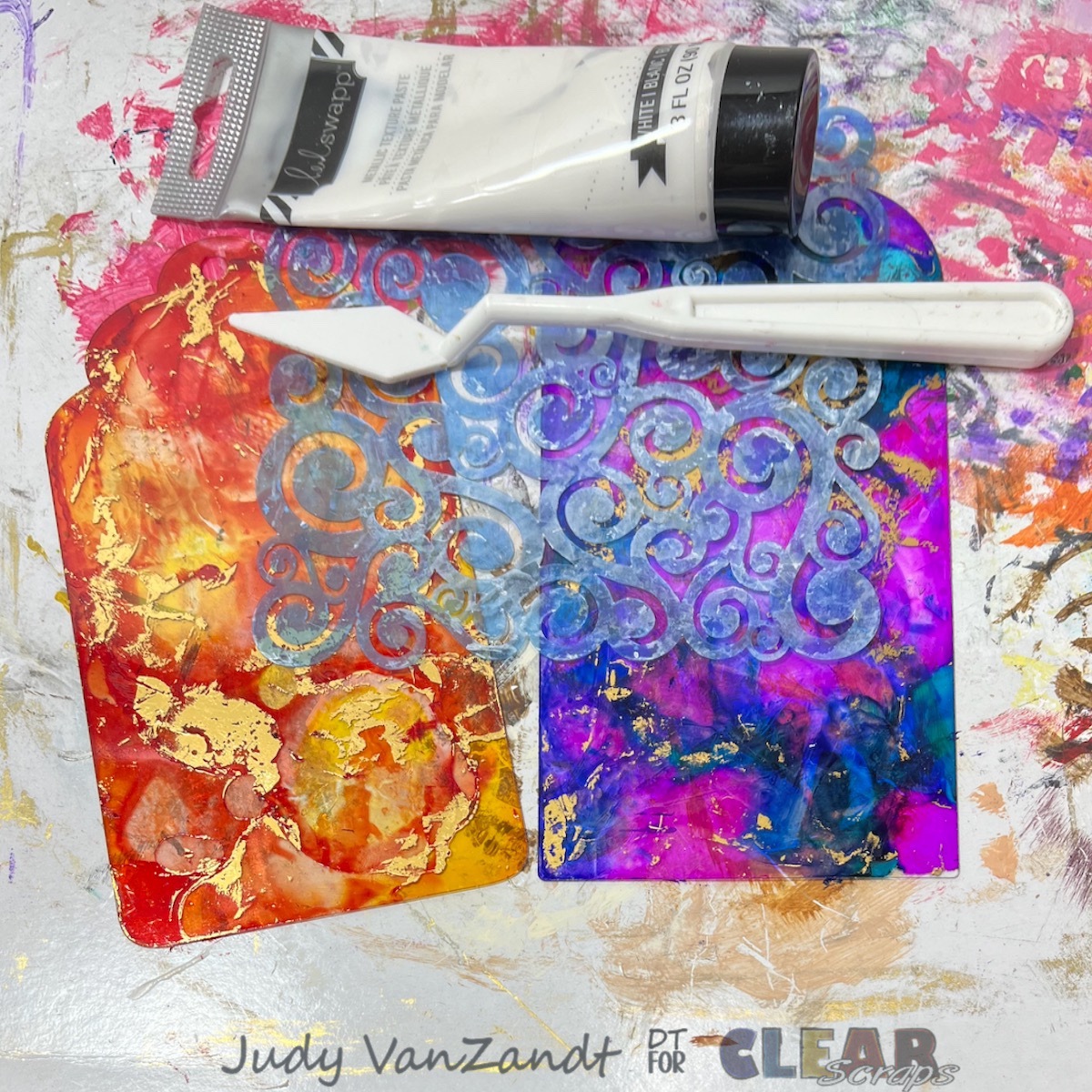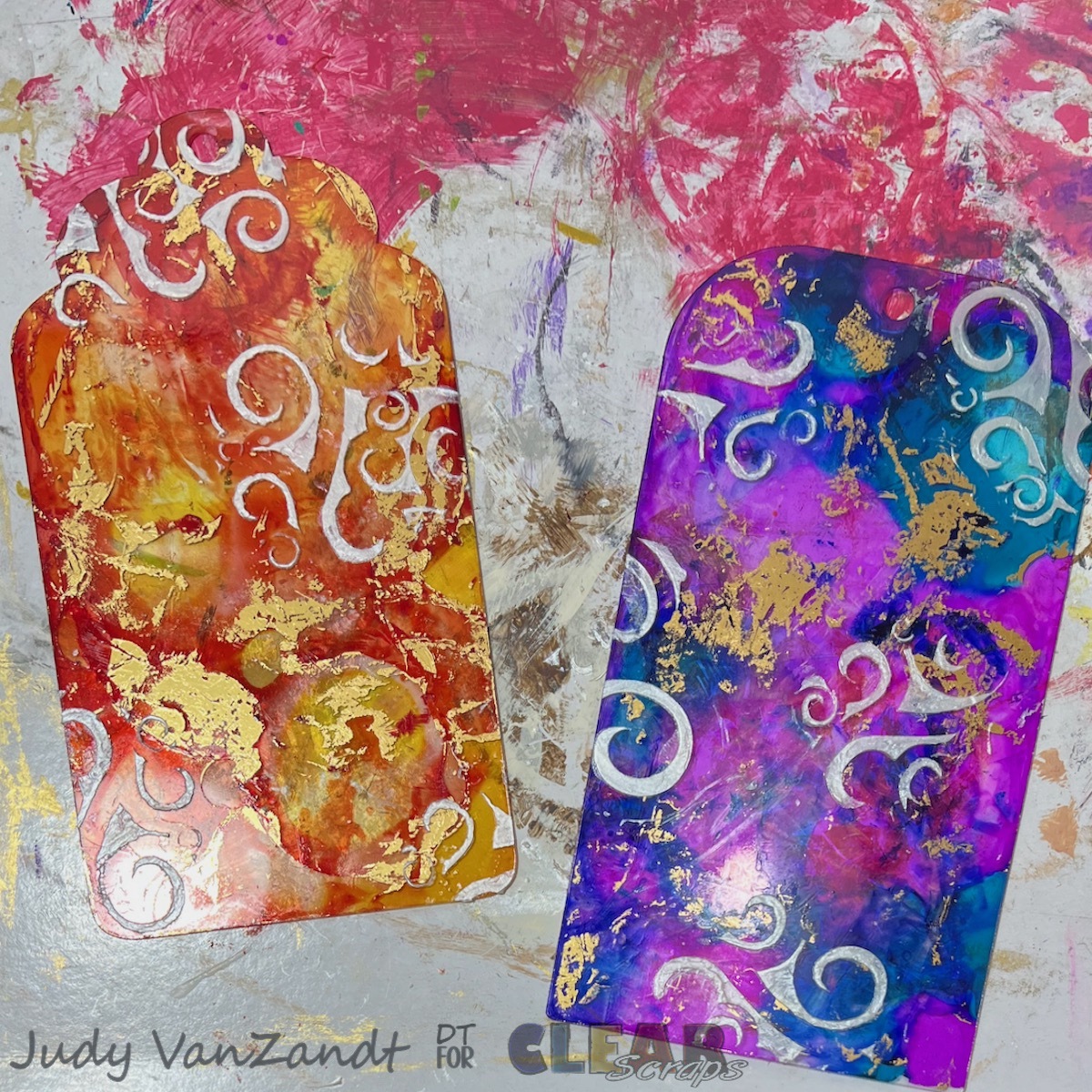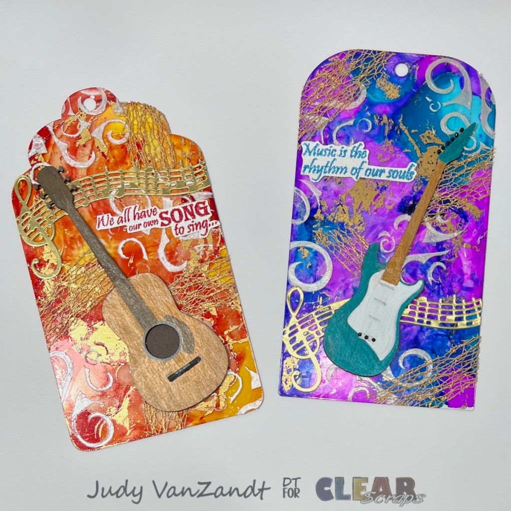 Hi everyone! Judy here sharing a colorful mixed media project created with fabulous products from Clear Scraps. These music-inspired acrylic tags are full of vibrant color, shimmer, and dimension — perfect for gifting, adding to a junk journal, or even hanging in a creative space!
