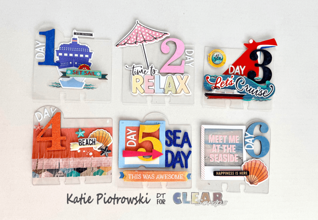 One of my favorite details is on the Day 3 divider card. I had saved a card from the cruise that featured the iconic Carnival funnel, so I fussy cut it out and added it to my design. We took so many selfies on the upper deck with that funnel in the background, so it felt like the perfect way to tie those memories into the album.