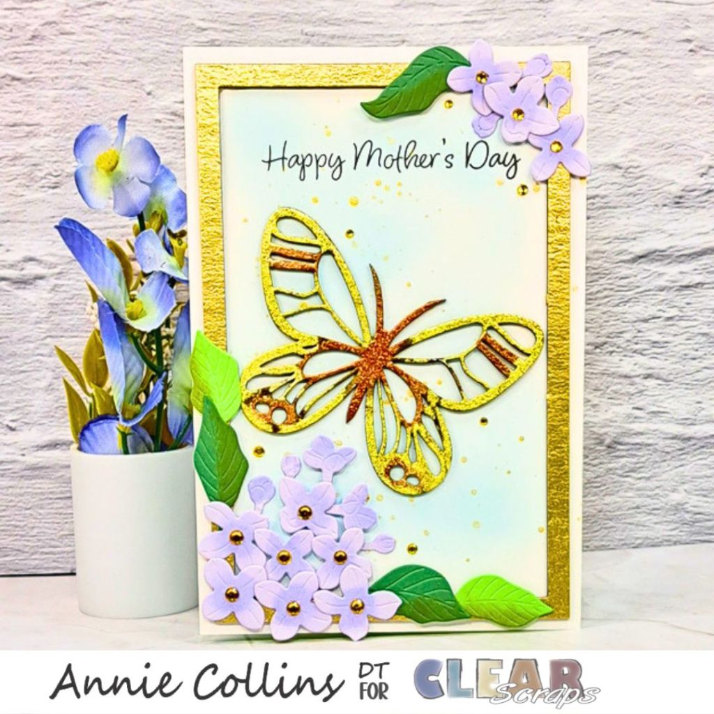 Hello Crafty Friends – Annie here with a Mother’s day card featuring Chipboard Embellishments from Clear Scraps. Today, I am using the Fancy Butterflies Chipboard Embellishments.
