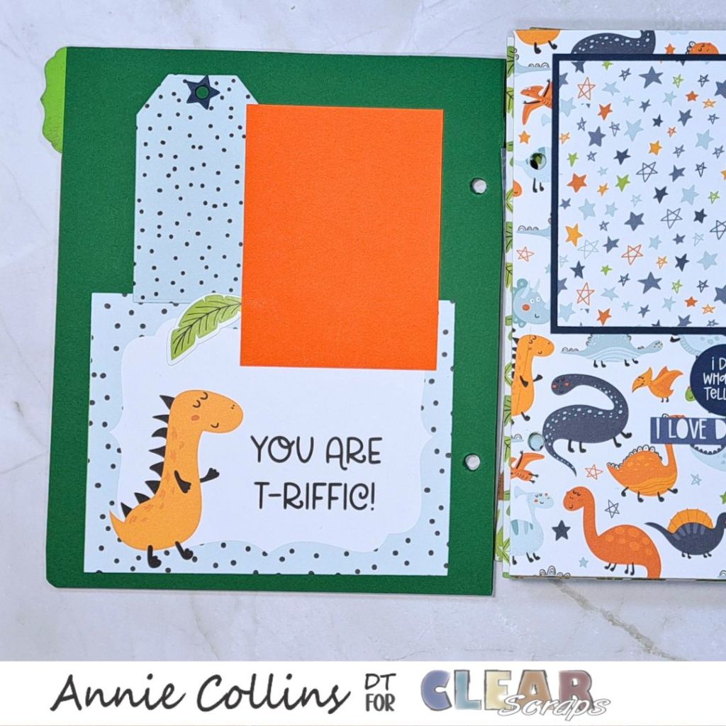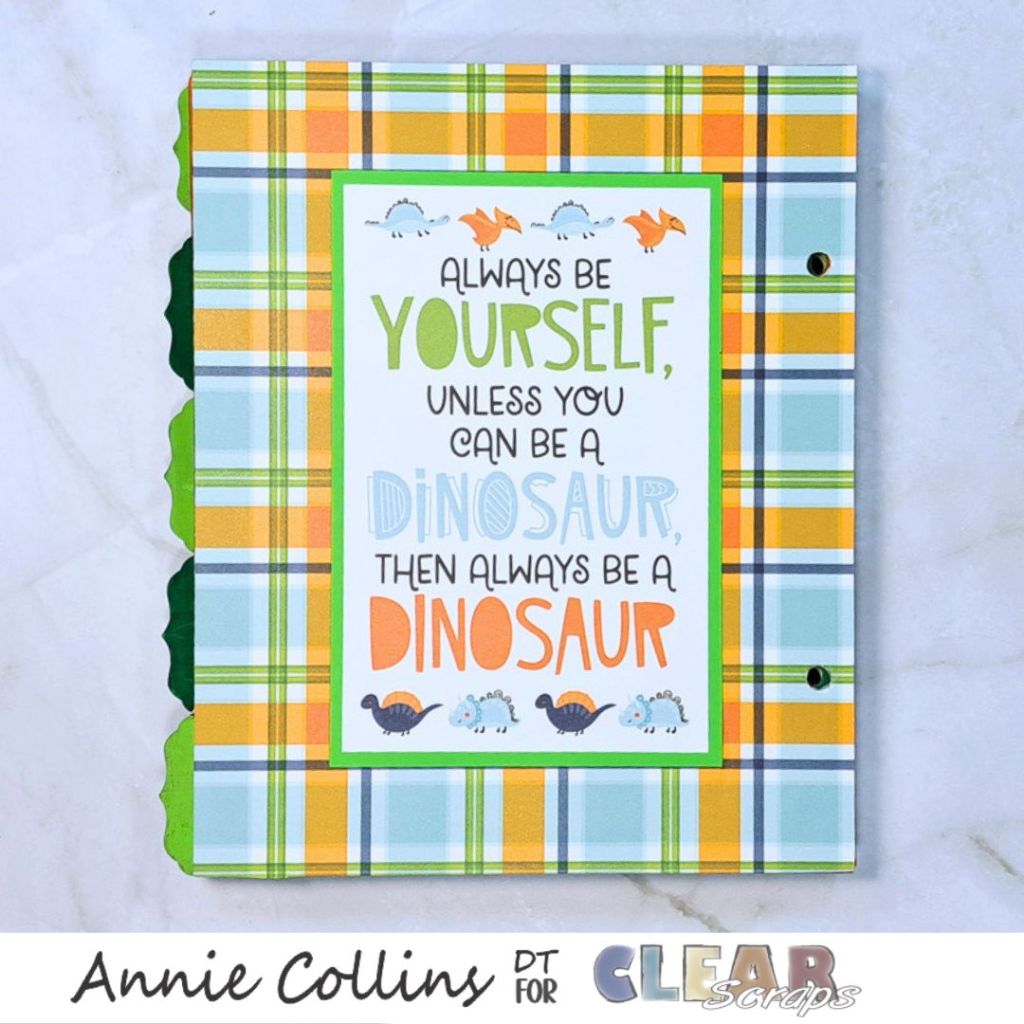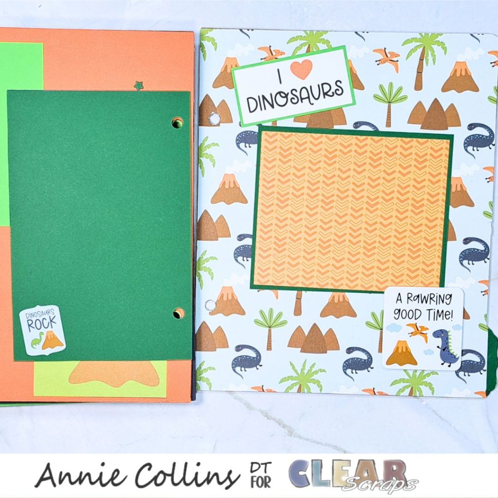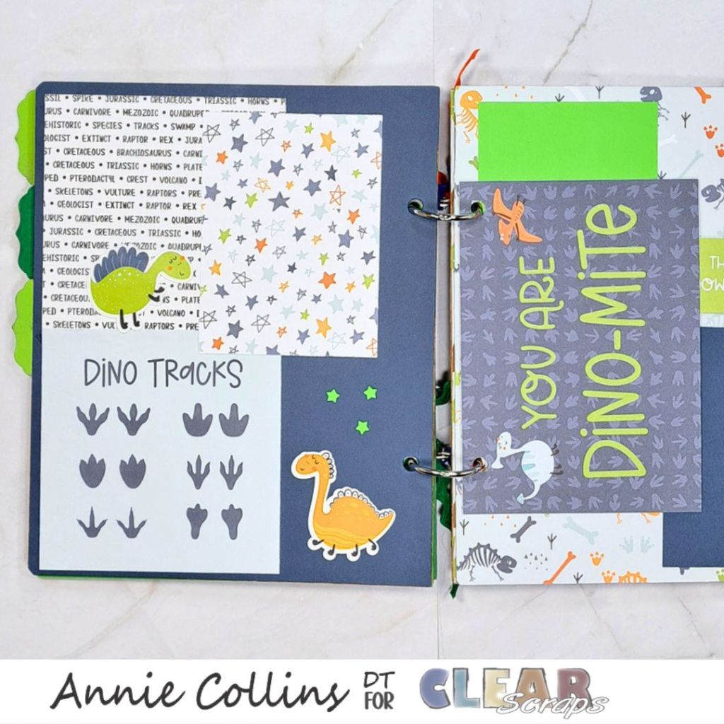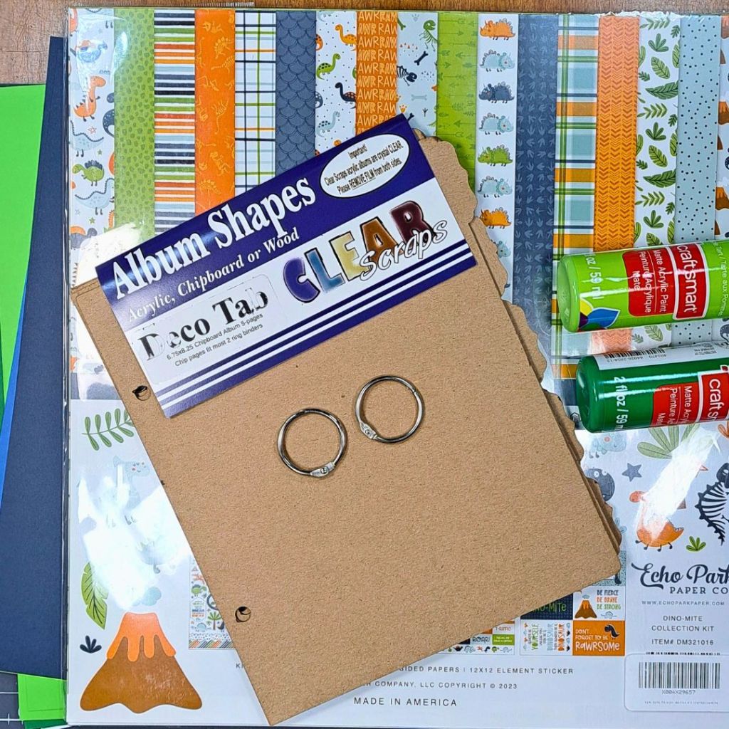 Hello Crafty Friends – I am here with a fun Dinosaur themed album featuring the Deco Tab Chipboard Album from Clear Scraps.