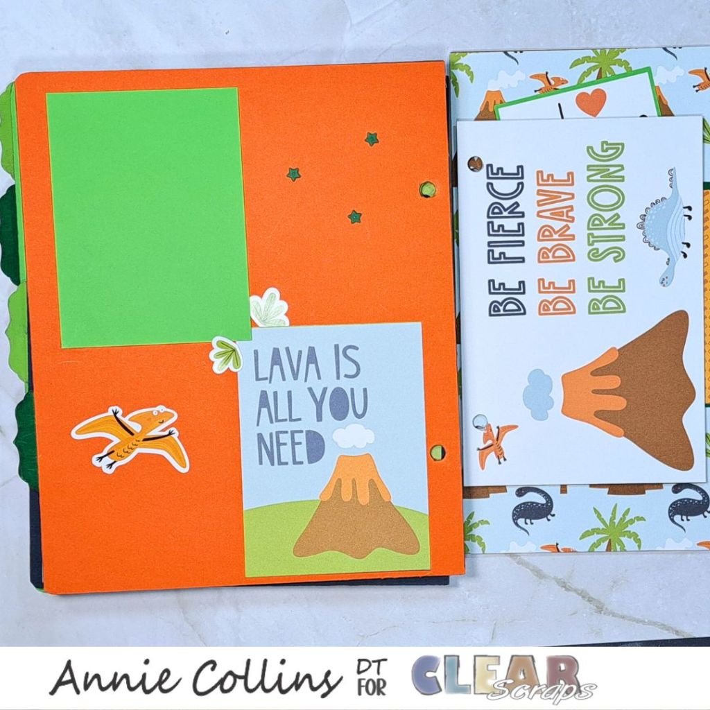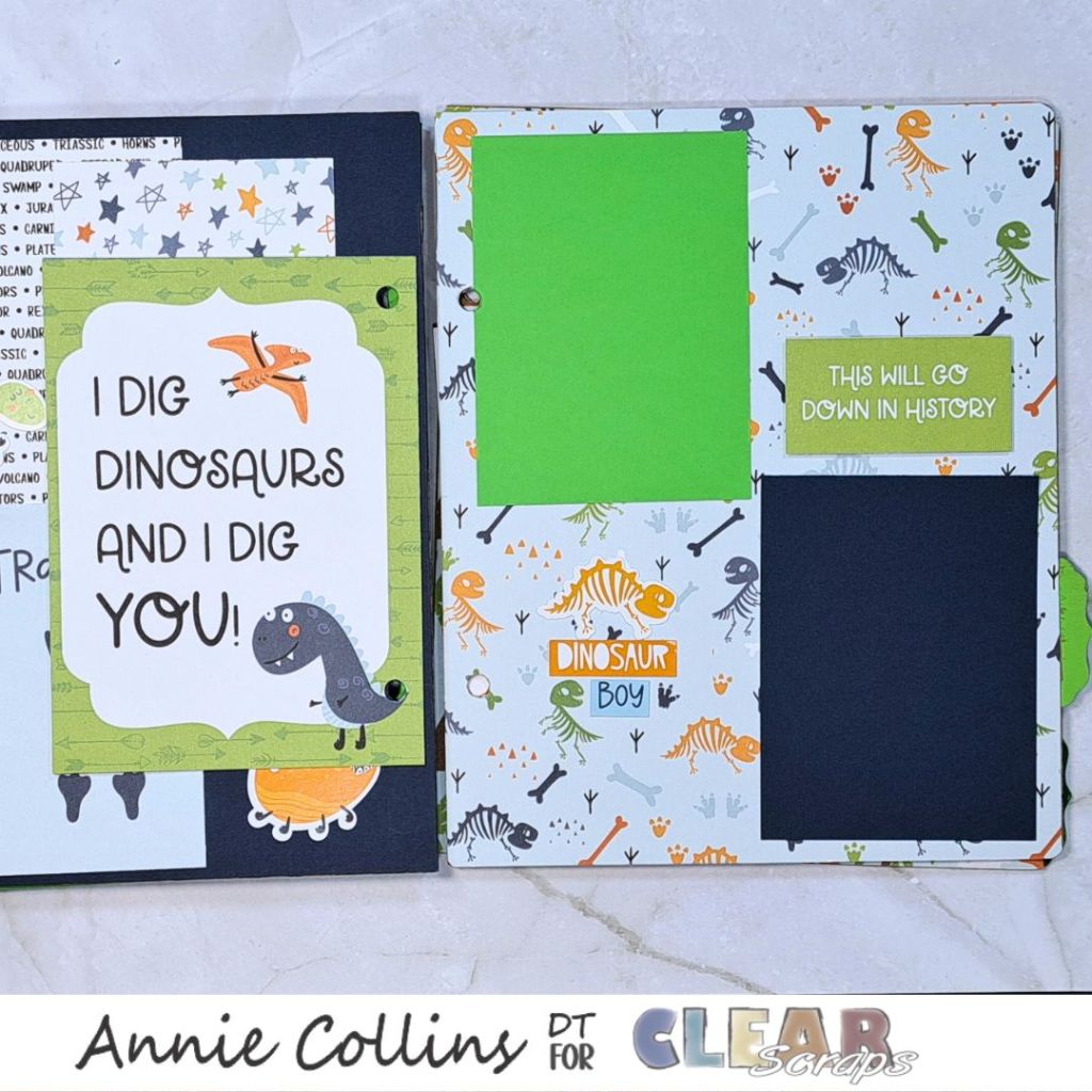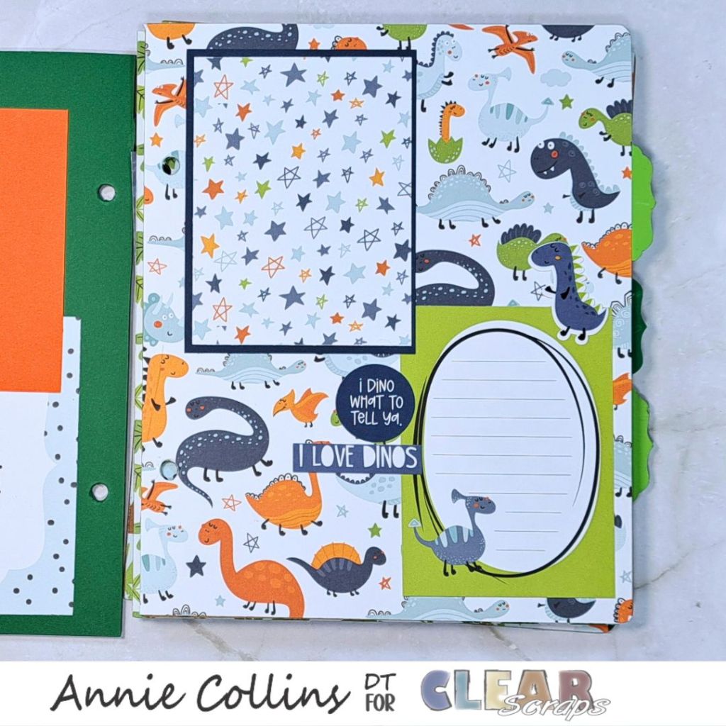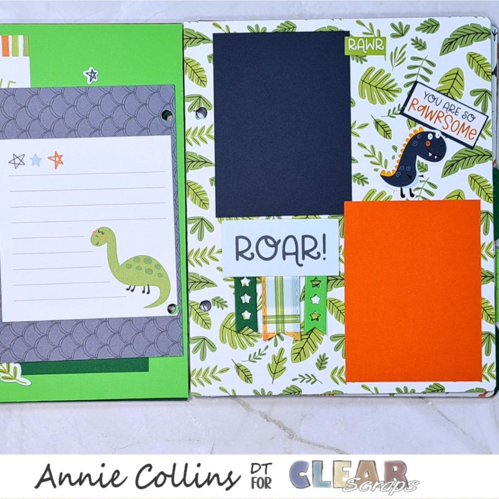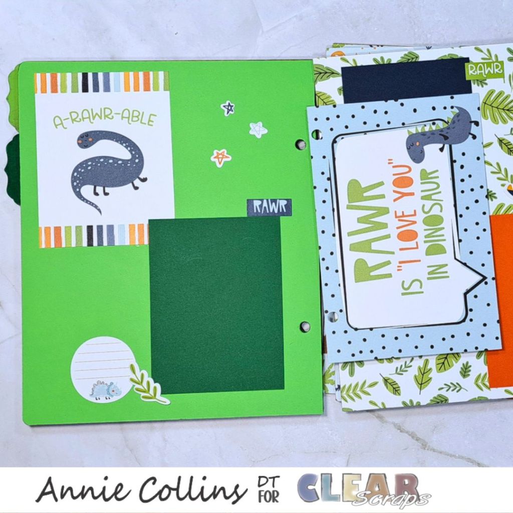 Hello Crafty Friends – I am here with a fun Dinosaur themed album featuring the Deco Tab Chipboard Album from Clear Scraps.