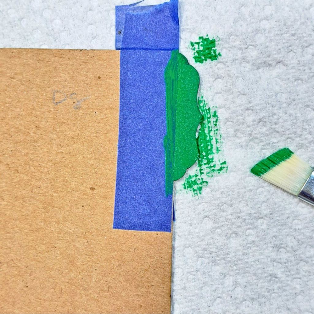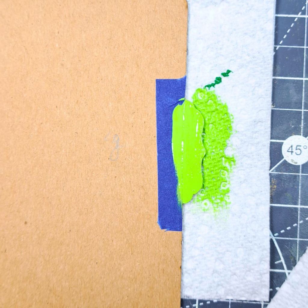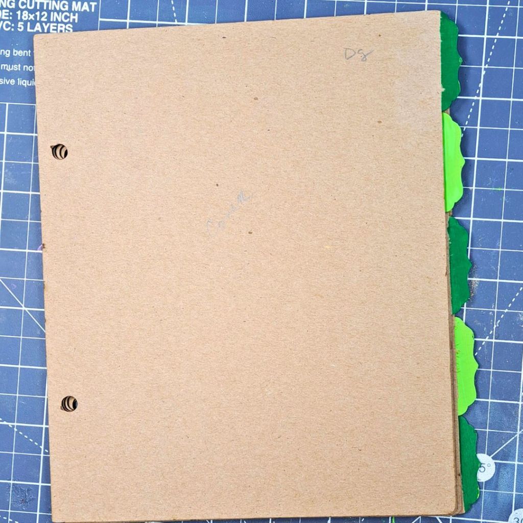 Next, I painted the tabs in alternating greens. Green then light green. I repeated the process on the back side.