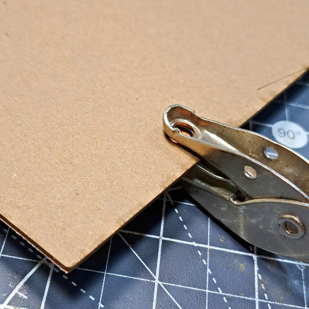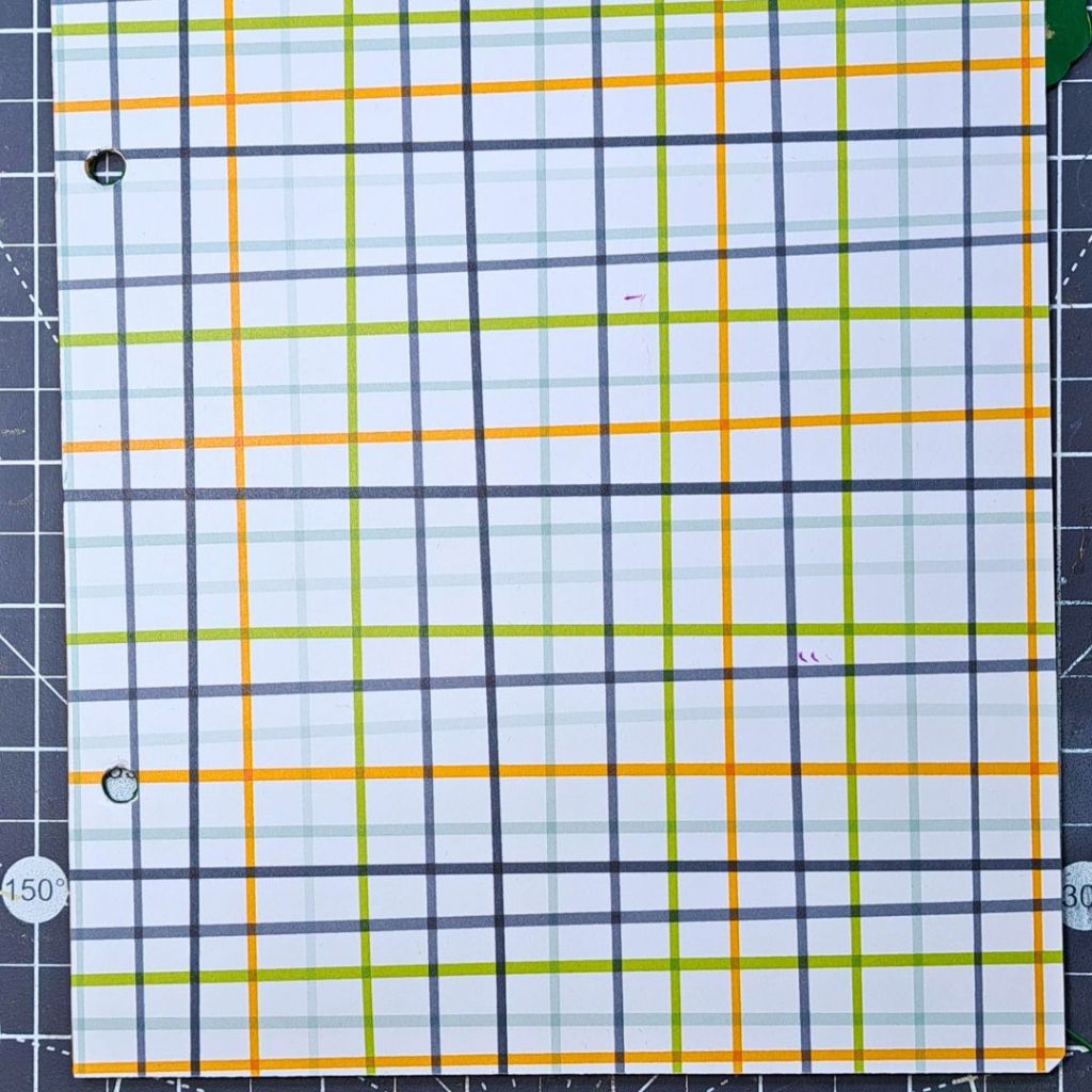 Step. 3: I adhered the pattern paper to the cover of the album. Then using a hole punch I punched the hole in the paper.