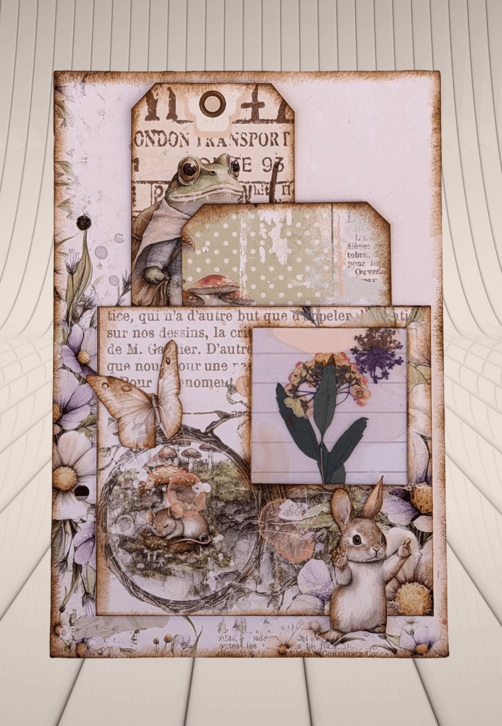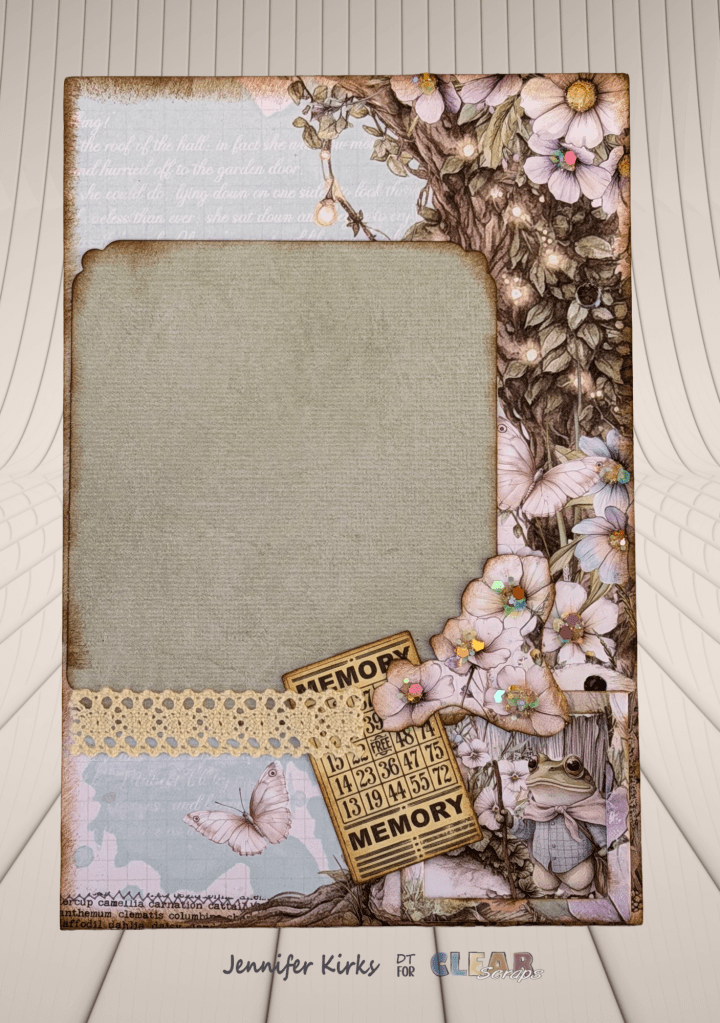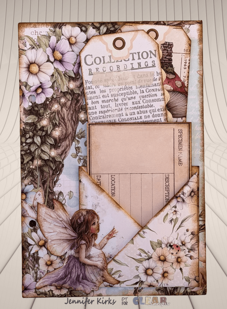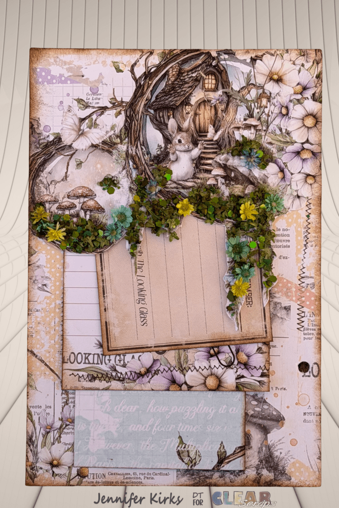 Hello crafty friends! Jennifer here today with this super cute 5 x 7 mini chipboard album. I absolutely love this beautiful fairy paper and the gorgeous colors throughout the collection.